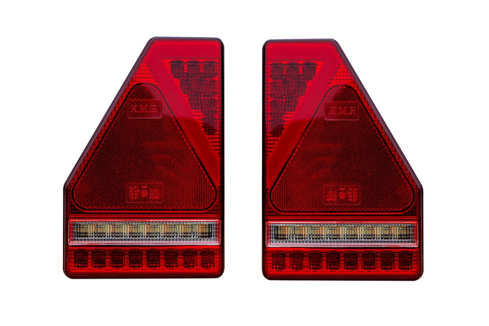 - Fanali posteriori a LED L1907+L1908 per montaggio a sinistra e a destra. Offrono sei funzioni: luce di posizione, luce freno, luce retromarcia, fendinebbia, indicatore di direzione e catarifrangente. Adatti per rimorchi, camion e macchine agricole.