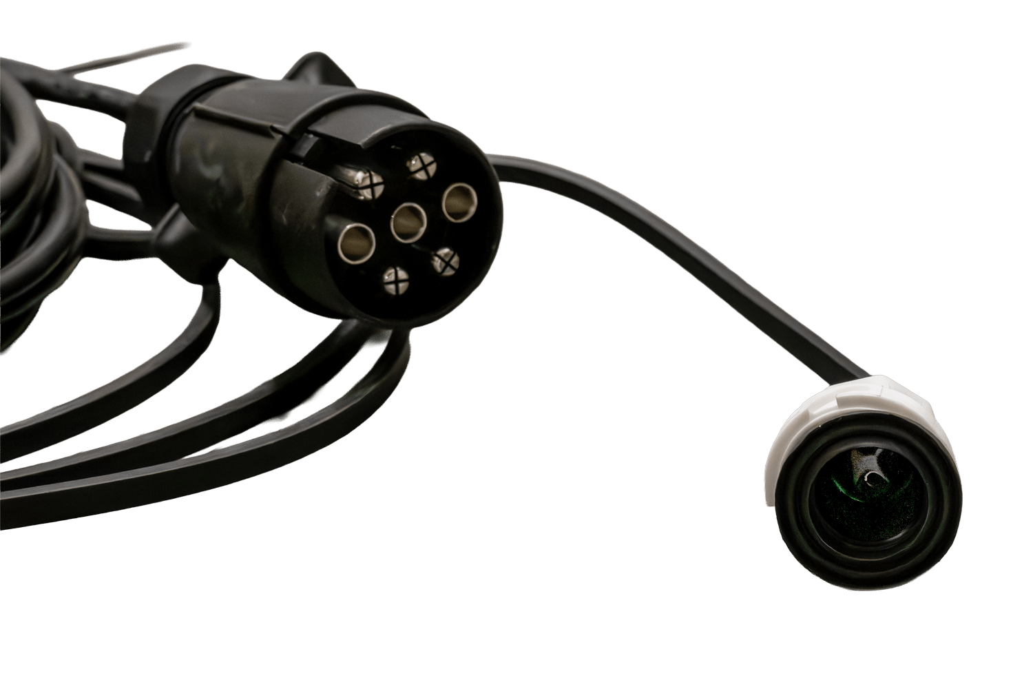 - Il sistema elettrico MANTES OUTLET è dotato di un cavo principale da 4,7 metri con connettore a 7 pin. Il cablaggio garantisce il corretto funzionamento dell'illuminazione del rimorchio, mentre i connettori a baionetta AJ.BA a 5 e 2 pin consentono un'inst