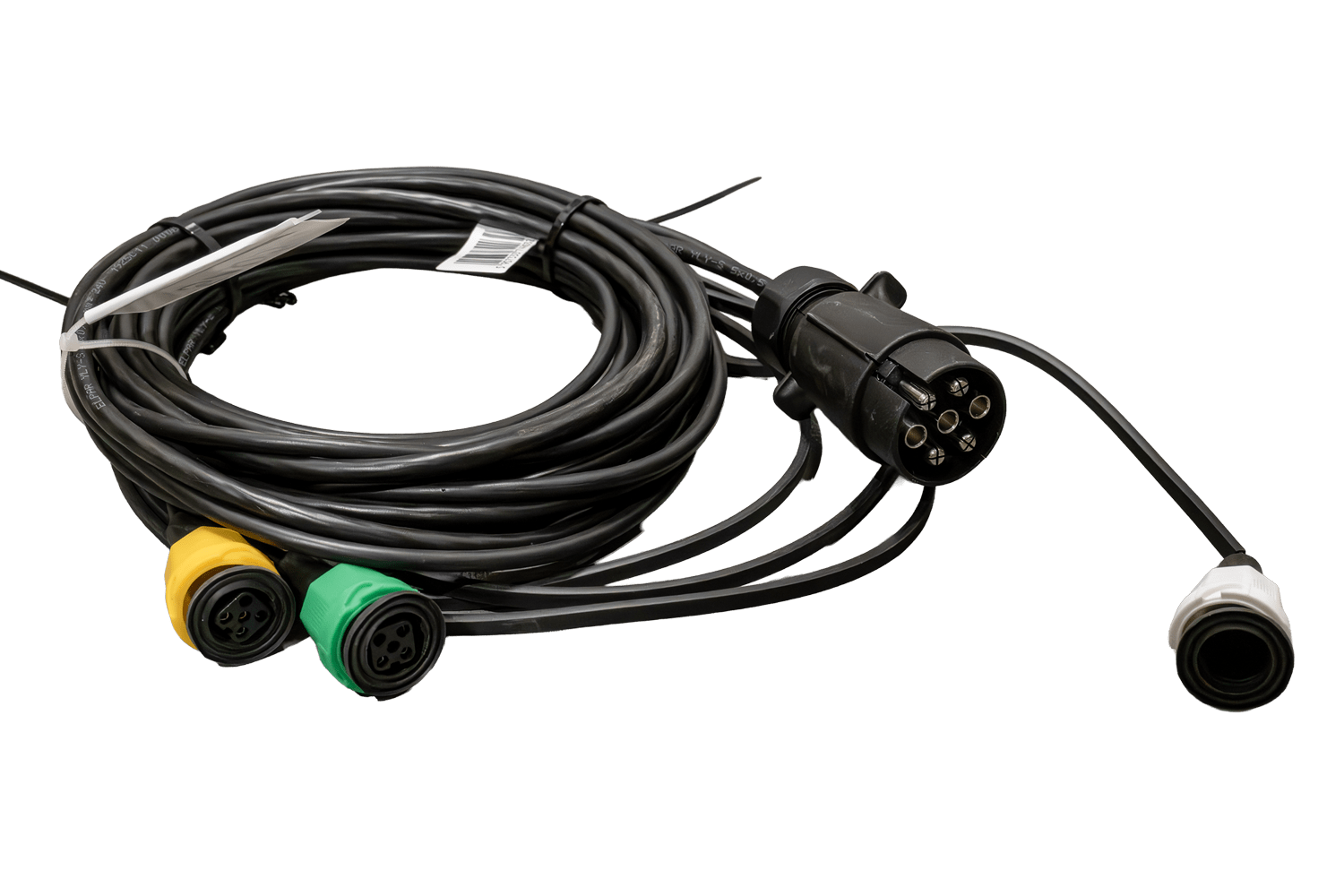 Cablaggio elettrico per rimorchio MANTES da 4,7 m con connettore a baionetta a 7 pin, 2 connettori AJ.BA a 5 pin e 2 connettori AJ.BA a 2 pin.