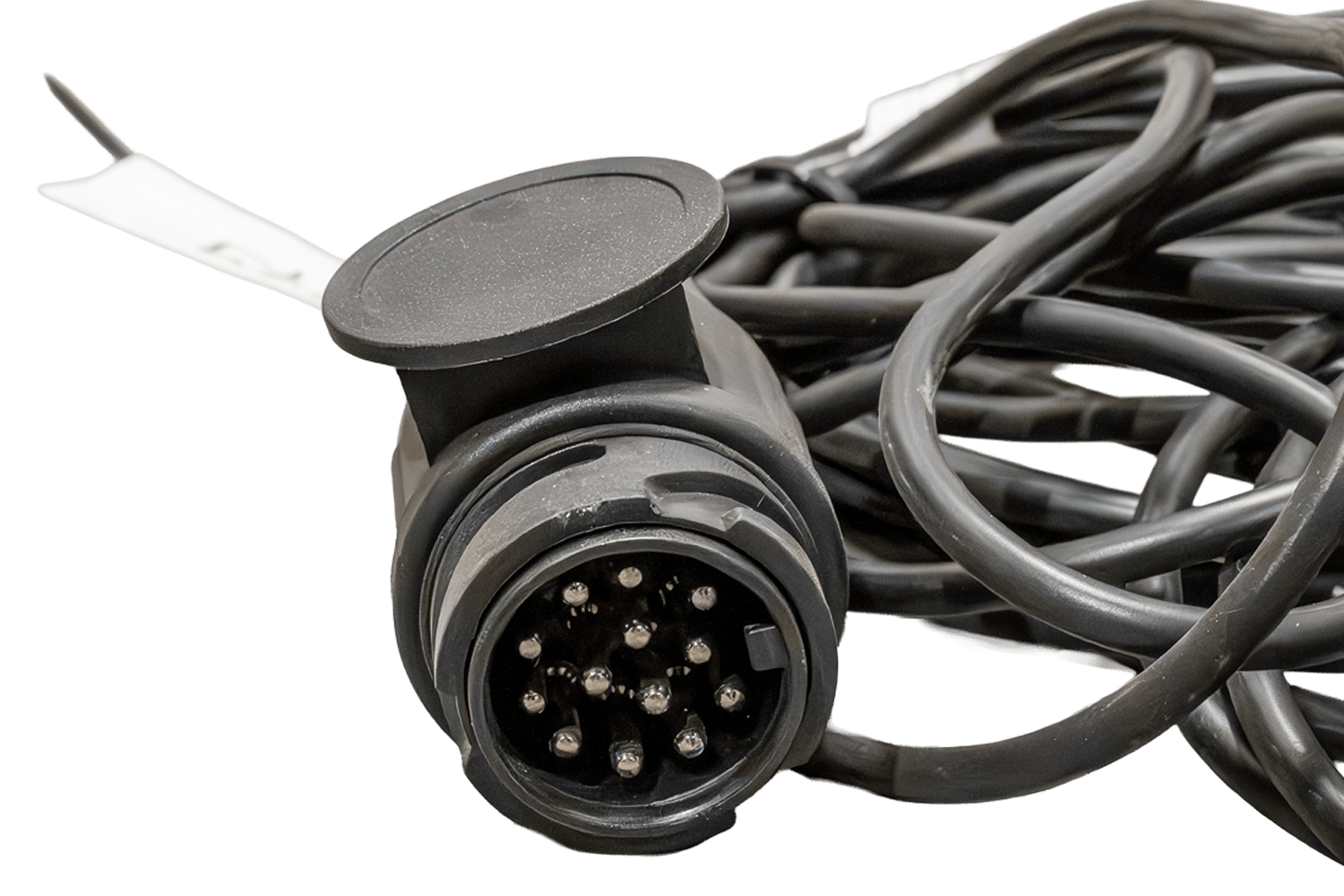 - Il sistema elettrico MANTES OUTLET è dotato di un cavo da 5,5 m con connettore a 13 pin. Il cablaggio garantisce il corretto funzionamento dell'illuminazione su rimorchi per camion e semirimorchi a pianale, mentre i connettori a baionetta a 5 pin consento