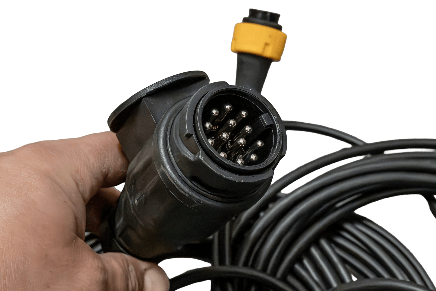 - Il sistema elettrico MANTES OUTLET è dotato di un cavo da 5,2 metri con connettore a 13 pin. Il cablaggio garantisce il corretto funzionamento dell'illuminazione su rimorchi per camion e semirimorchi a pianale, mentre i connettori a baionetta a 5 pin cons