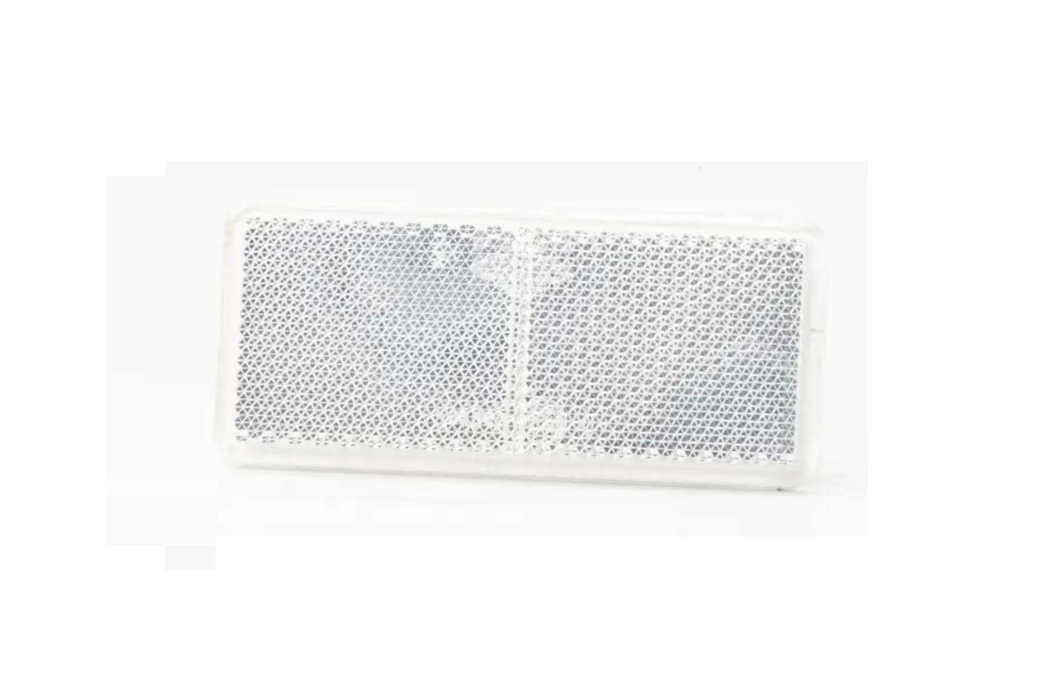 Il catarifrangente bianco di dimensioni 90 × 40 mm funziona secondo il principio della riflessione della luce, rendendo il veicolo visibile quando illuminato da altri veicoli.