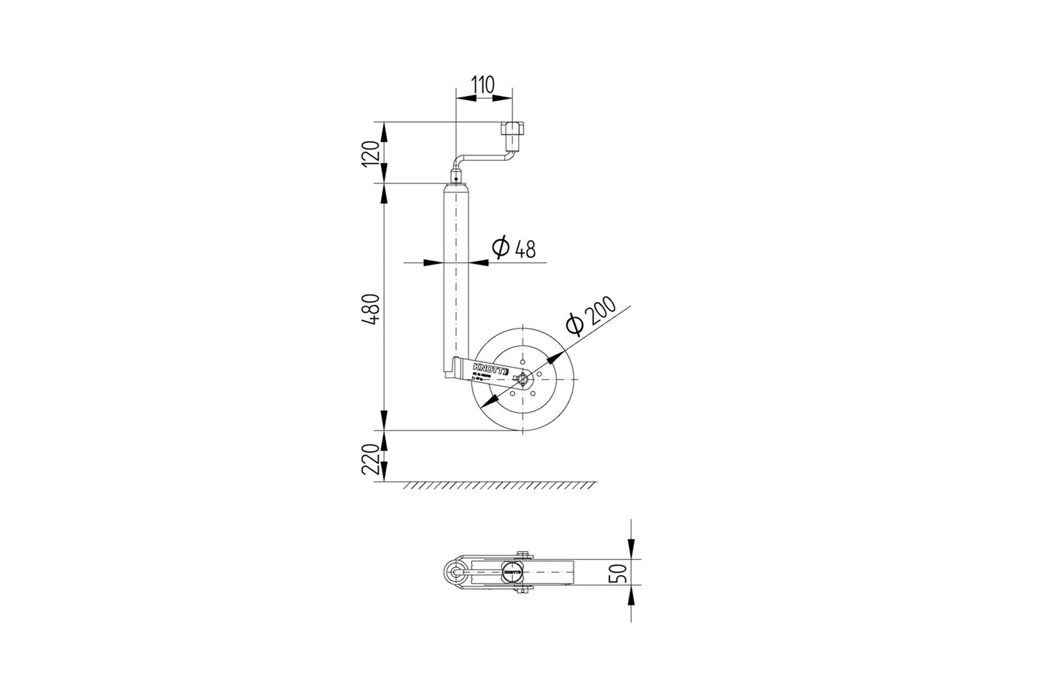 La ruota di supporto TK48 è dotata di un tubo con un diametro di 48 mm e un'altezza totale di 480 mm, ruota inclusa , che garantisce una struttura solida e stabile e un lavoro confortevole.