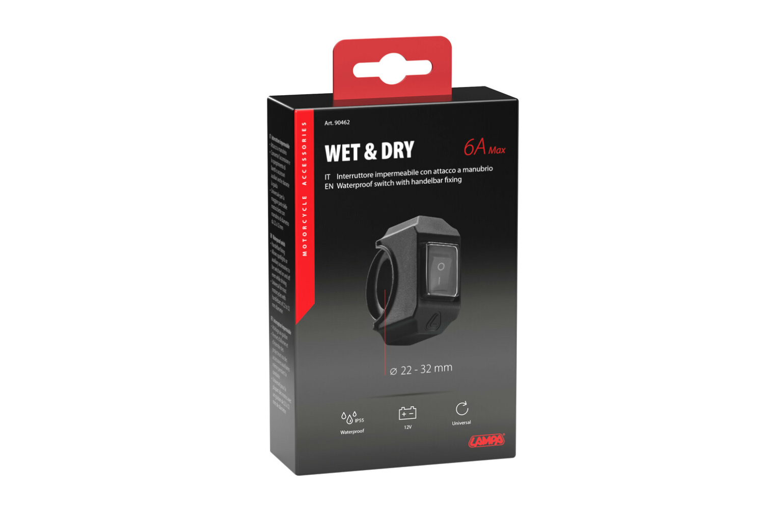 Interruttore impermeabile per volante LAMP 90462 per il controllo di dispositivi elettrici 12V 6A max