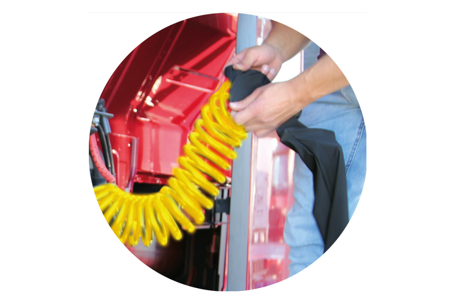 La guaina protettiva gialla Truck-Tights di LAMPA è progettata per organizzare e proteggere cavi e tubi flessibili a spirale nei camion. Previene efficacemente l'attorcigliamento dei cavi , migliorando l'estetica e la sicurezza dell'impianto tra trattore e rimorchio.