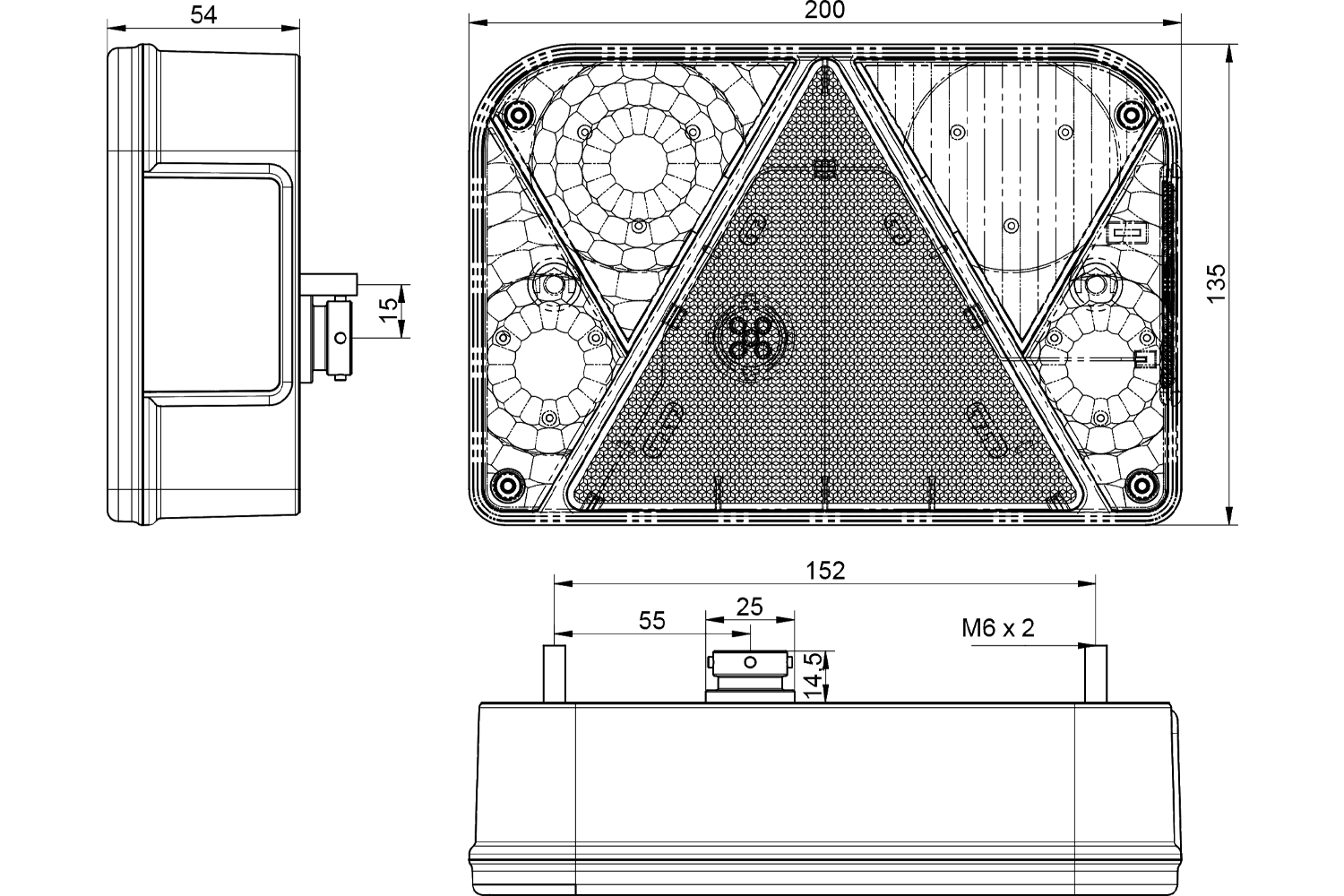 Il fanale posteriore DPT35 di DOBPLAST è destinato all'installazione sul lato sinistro del veicolo e ha le seguenti dimensioni: larghezza 200 mm, altezza 135 mm, profondità 54 mm . Dotato di connettore a baionetta a 5 pin , consente un'installazione facile e veloce in rimorchi, autobus e carri attrezzi .
