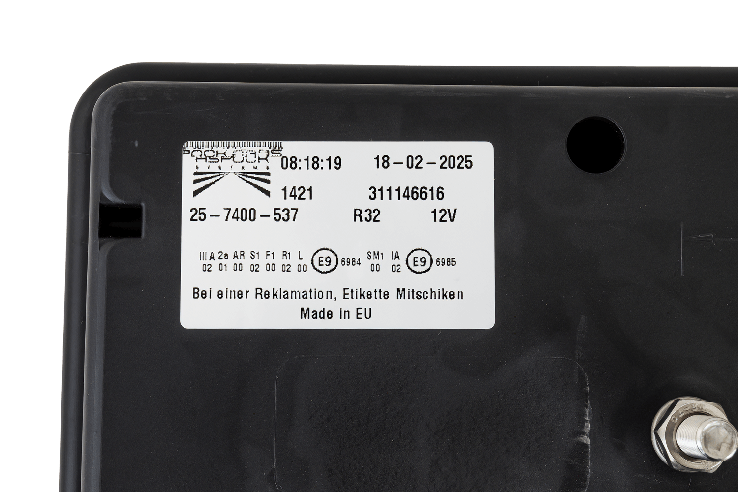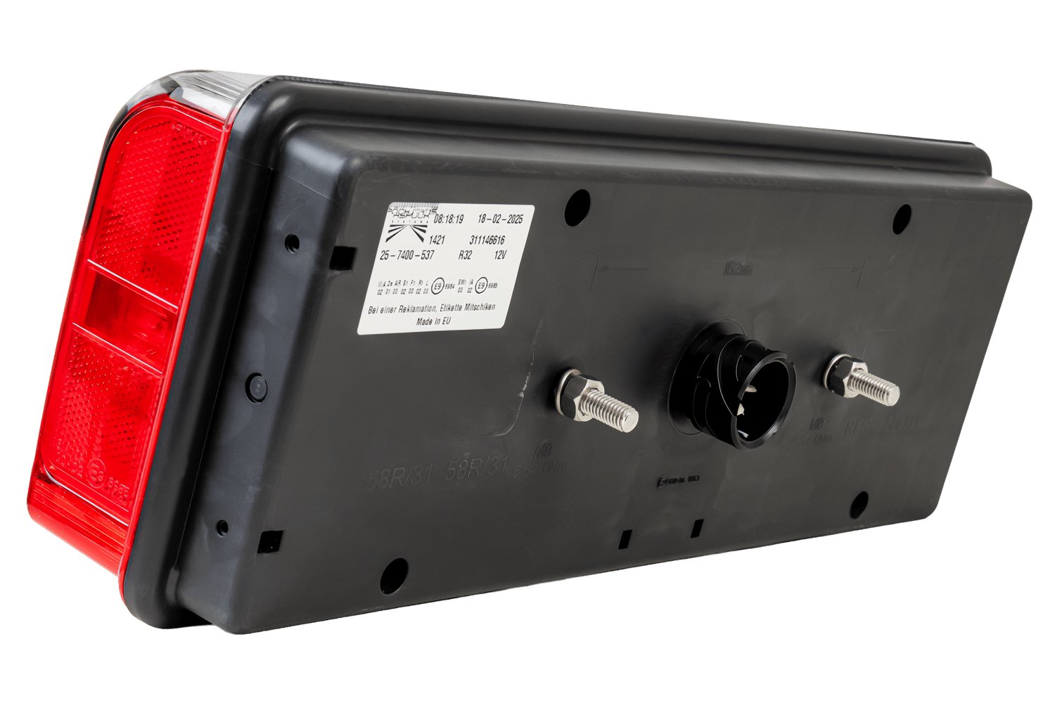 - Fanale posteriore Europoint III ASPÖCK per installazione sul lato destro. Offre sette funzioni: luce di posizione, luce di stop, fendinebbia, luce di retromarcia, luce di posizione laterale, indicatore di direzione e catarifrangente.