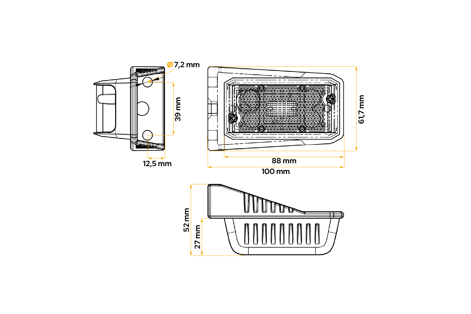 La luce di posizione a LED DPT15 di DOBPLAST è progettata per il montaggio sia sul lato sinistro che destro del veicolo e ha le seguenti dimensioni: larghezza 100 mm, altezza 61,7 mm, profondità 52 mm . Progettato per funzionare in un intervallo di tensione di 12-24 V , può essere utilizzato su rimorchi, macchine agricole, camion e rimorchi, il che ne evidenzia l'universalità . Dotato di staffa di montaggio angolata e di cavo piatto da 0,5 m , consente un'installazione facile e veloce. Grazie all'utilizzo della tecnologia LED la lampada garantisce elevate prestazioni, durata ed efficienza energetica, garantendo la sicurezza in diverse condizioni stradali.