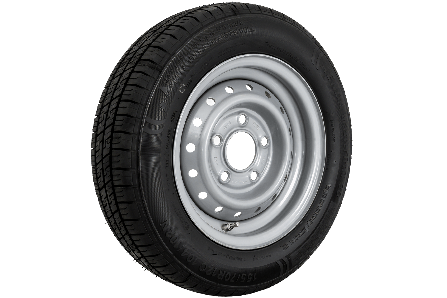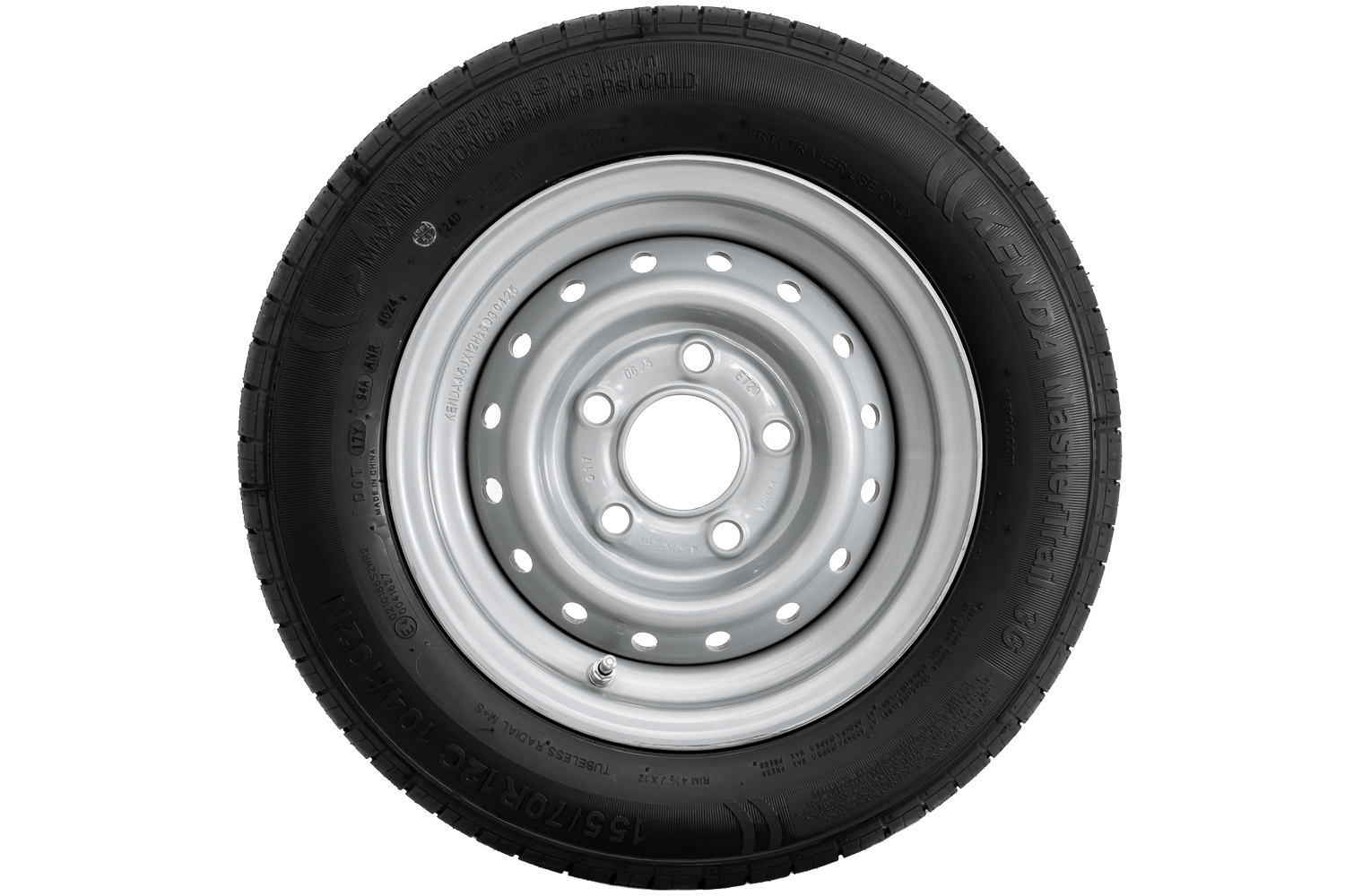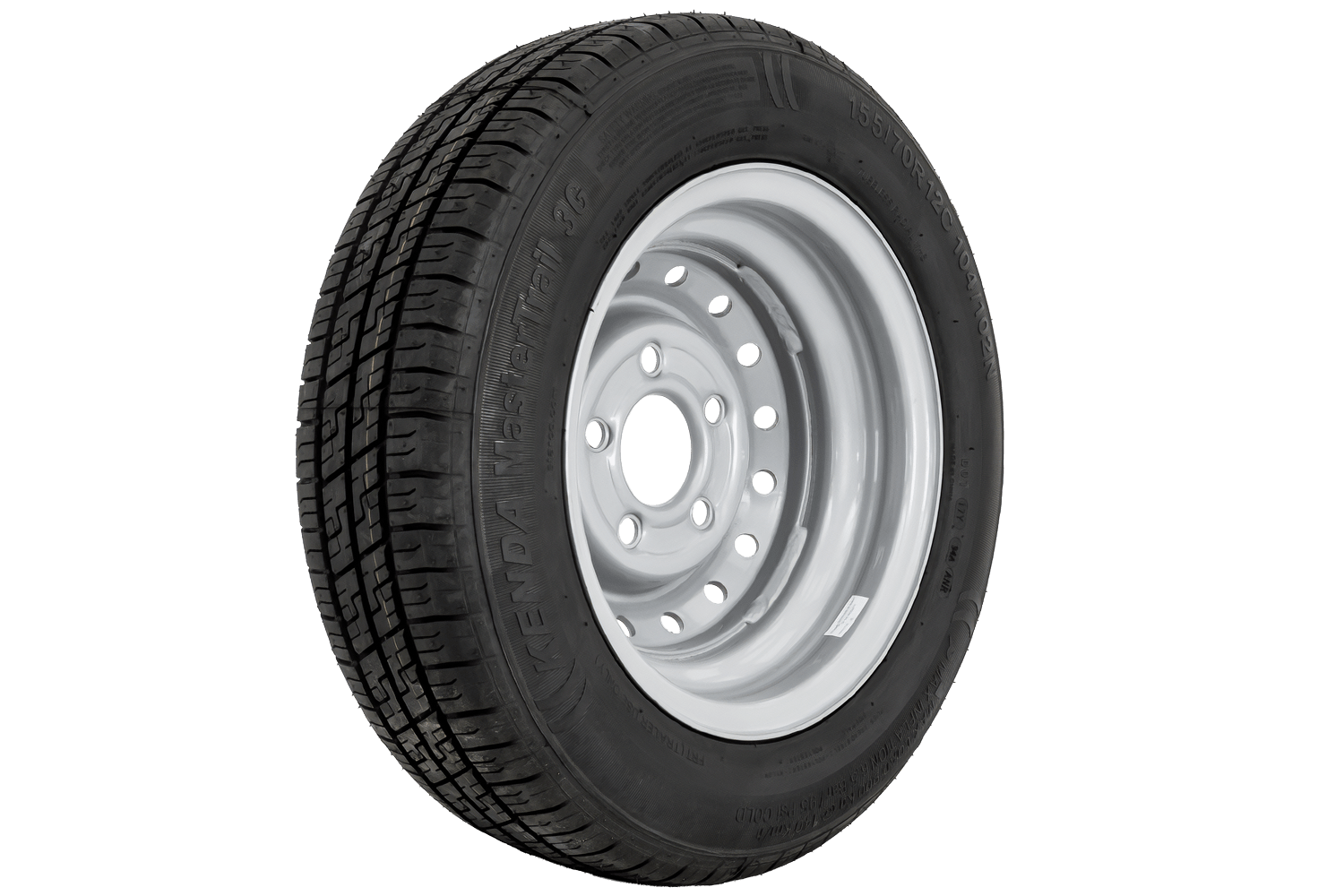 - Ruota rinforzata destinata a rimorchi pesanti. Pneumatico KENDA 155/70 R12C che garantisce sicurezza e stabilità durante la guida. Cerchio KENDA in acciaio 4.5Jx12"H2 5X112 ET:20. La portata massima della ruota è di 900 kg.