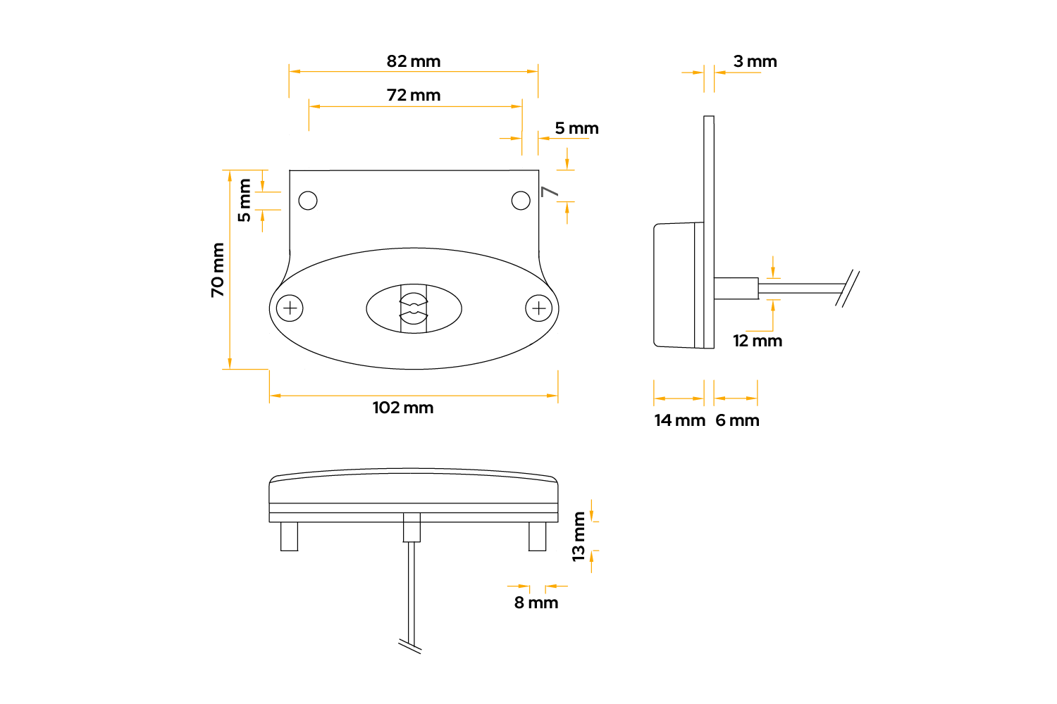 Luce di posizione a LED ASPÖCK FLATPOINT II, arancione, universale, con supporto