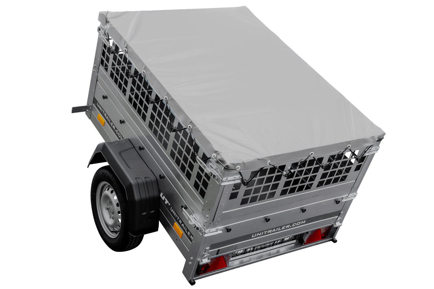 RIMORCHIO LEGGERO SENZA FRENI 750 KG UNITRAILER GARDEN TRAILER 150 KIPP (NEW) CON RUOTINO SOVRASPONDE A RETE E TELO GRIGIO