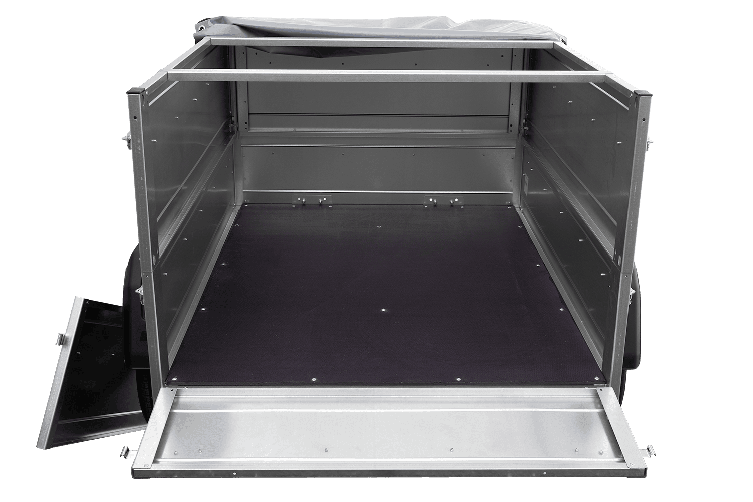 Il timone basculante permette di abbassare il piano di trasporto, cosa estremamente utile durante il carico della merce sul rimorchio e ancora più utile durante lo scarico della stessa. Anche se incontri la necessità di trasportare un carico più lungo, non avrai problemi. Il pannello posteriore incernierato e rimovibile consente di caricare un carico più lungo della sua superficie di trasporto.