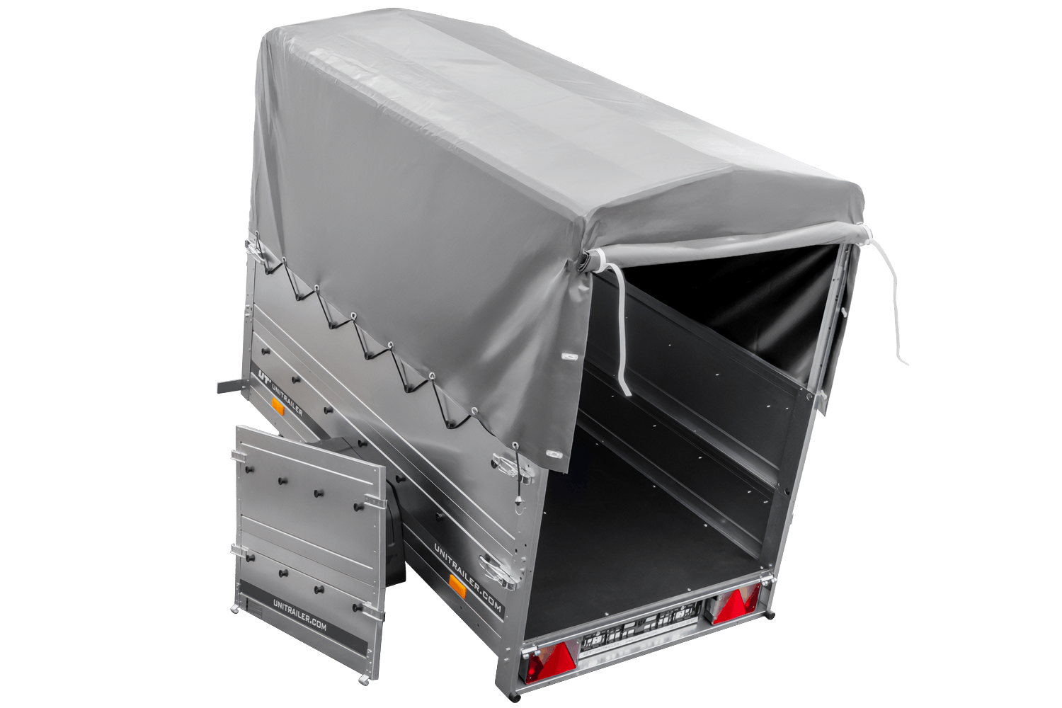 RIMORCHIO CARRELLO LEGGERO 750 KG + SOVRASPONDE + RUOTINO + CENTINA CON TELO GRIGIO UNITRAILER GARDEN TRAILER 200 KIPP