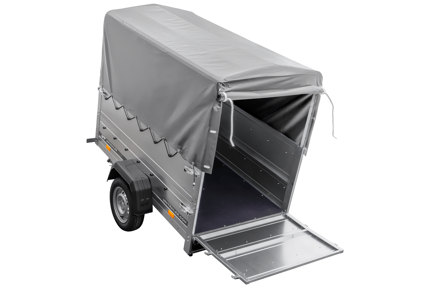 Rimorchio leggero per auto GARDEN TRAILER 200 KIPP munito di ruotino d'appoggio, sovrasponde e centina con telo grigio. Ruotino d'appoggio consente facile manovrabilità senza carico. Suovrasponde aumentano volume dell'area di trasporto e l'altezza di un rimorchio. In combinazione di sovrasponde e centina e telo girgio hai la possibilità di trasportare vari carichi. Trasporto di atrezzature, materiali, trasloco, acquisti più grandi o una lunga vacanza - con il nostro rimorchio sarà sicuramente più facile.