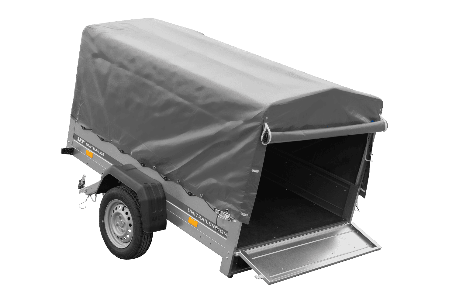 Rimorchio monoasse 200x125 UNITRAILER GARDEN 201 KIPP con telaio H-800 e copertura grigia