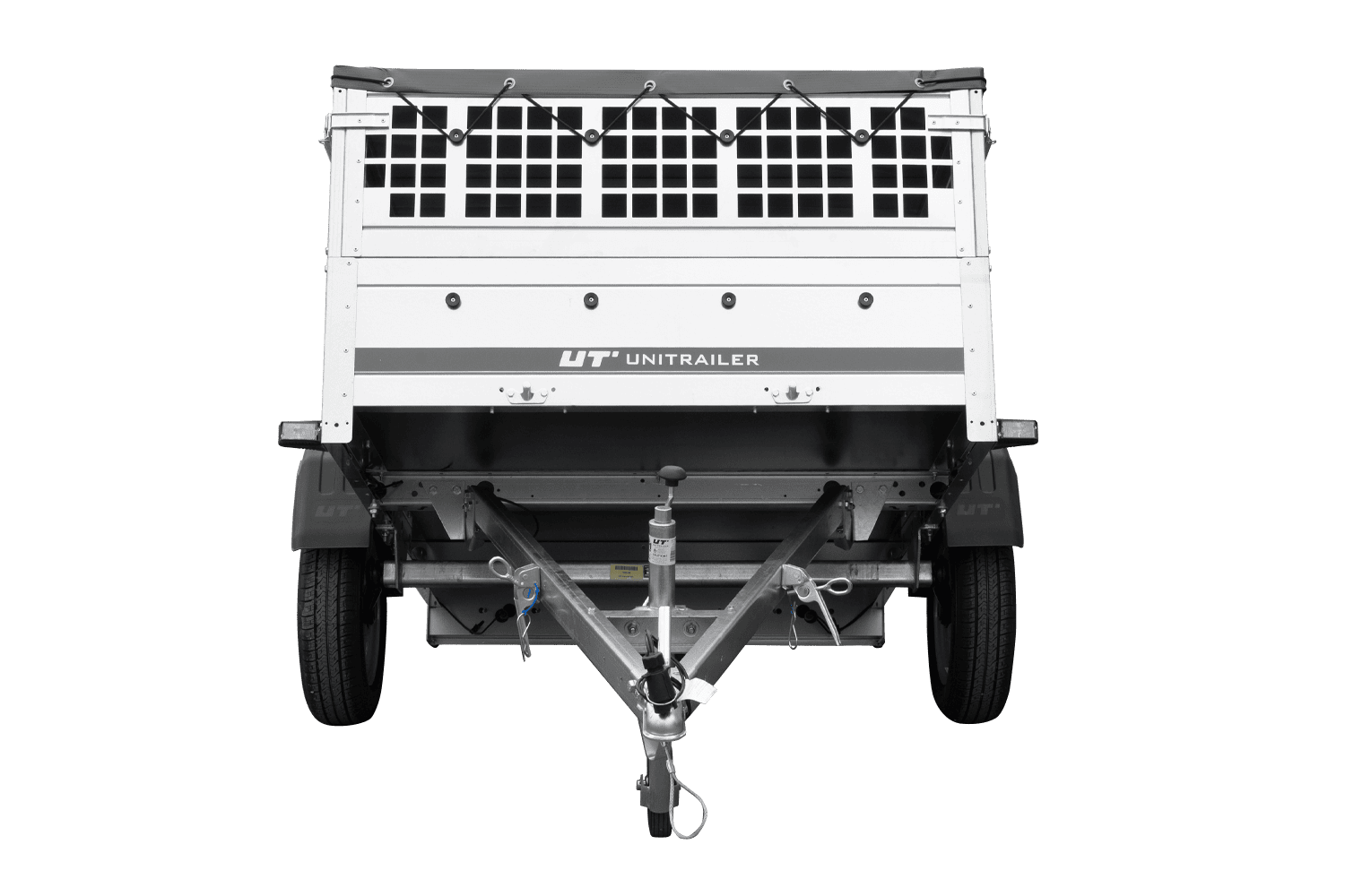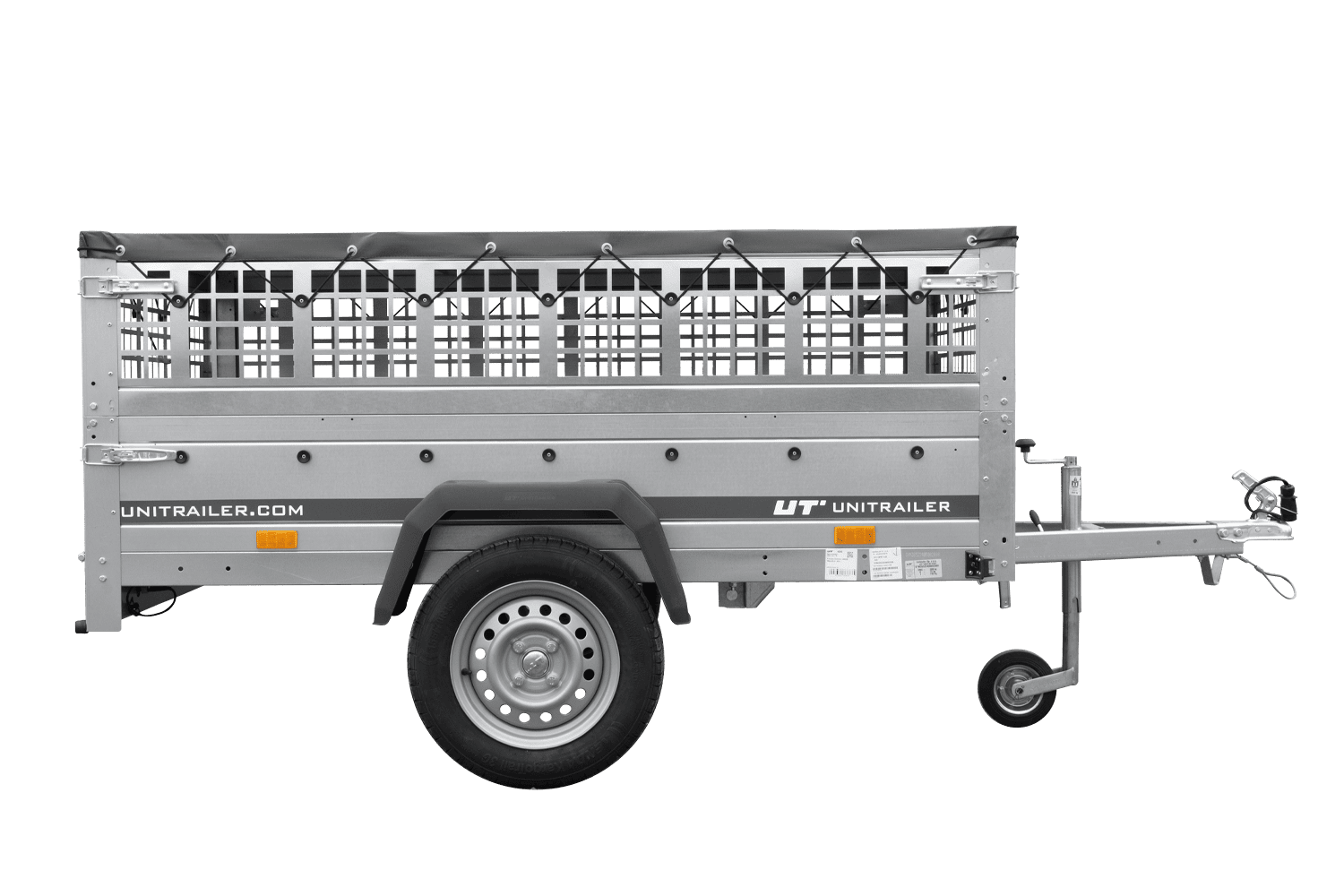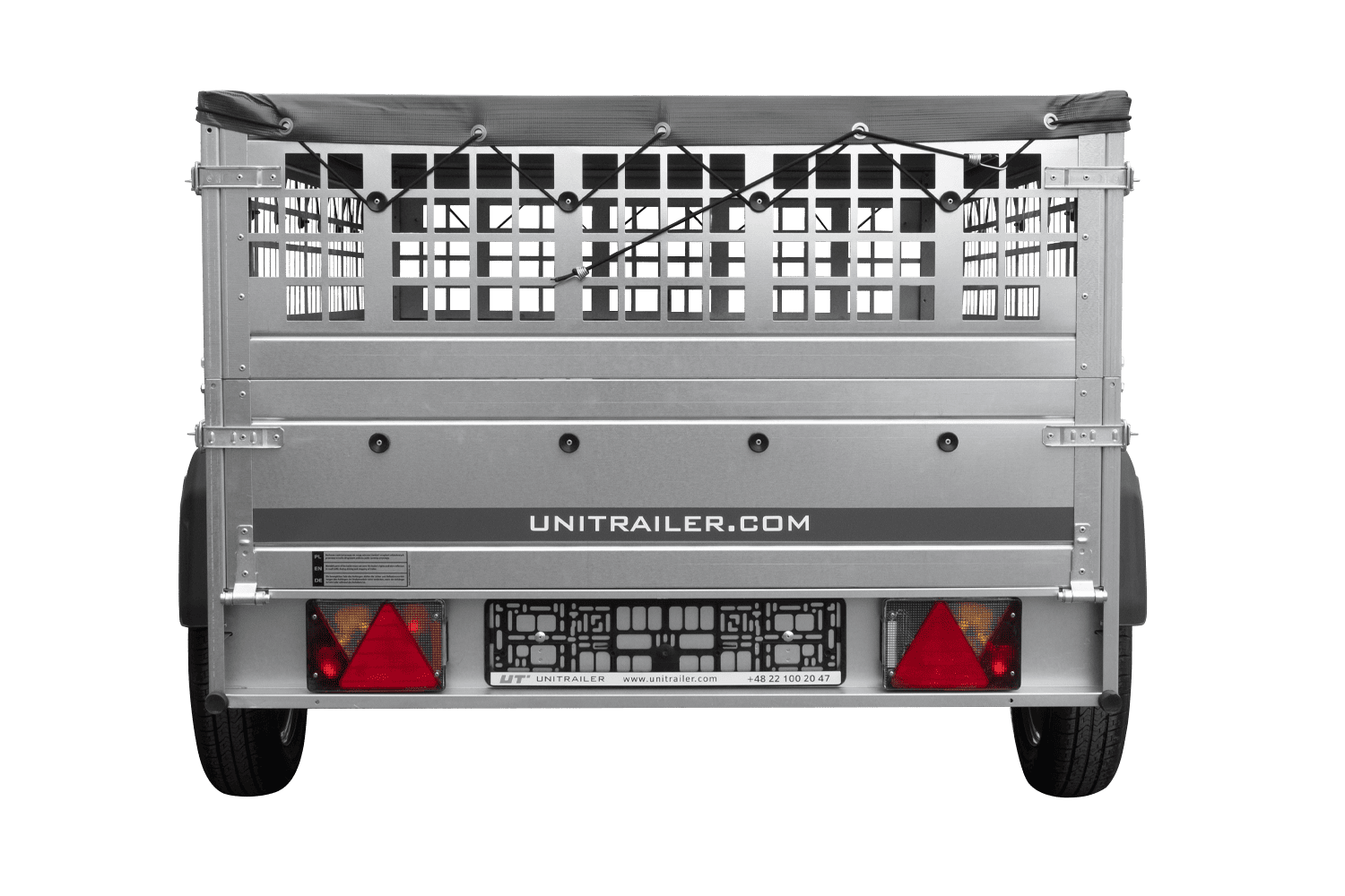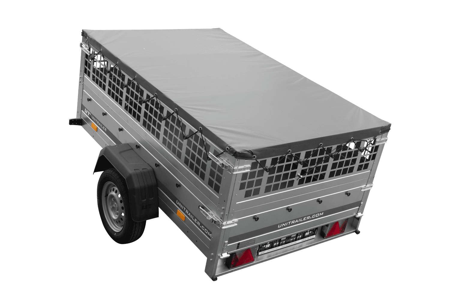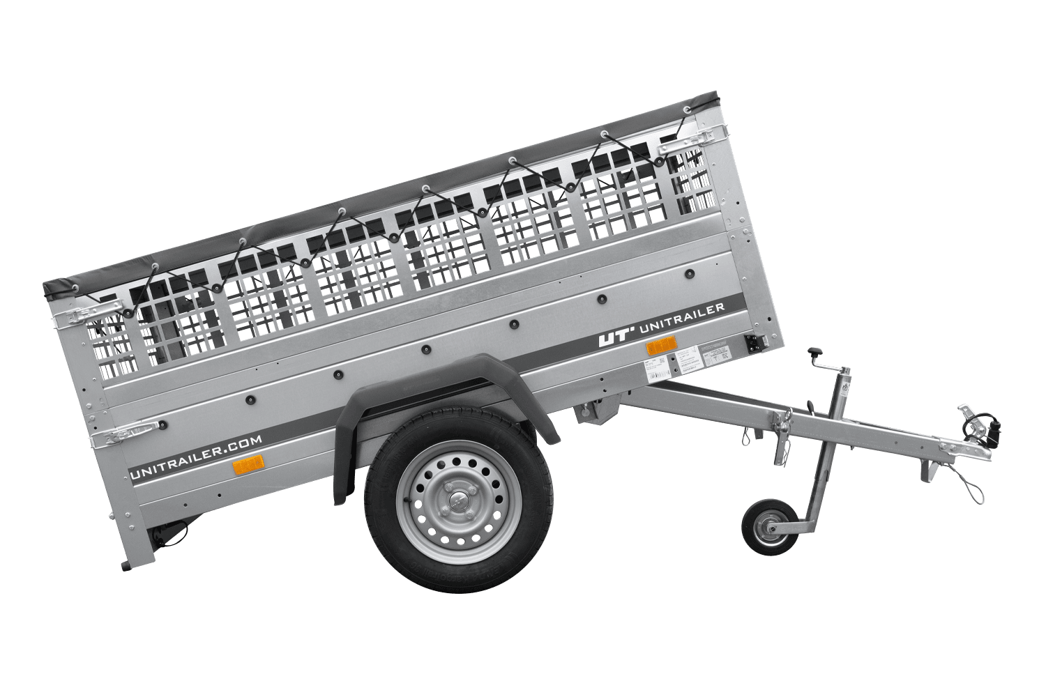 Rimorchio monoasse 200x125 UNITRAILER GARDEN 201 KIPP con sponde in rete e copertura grigia