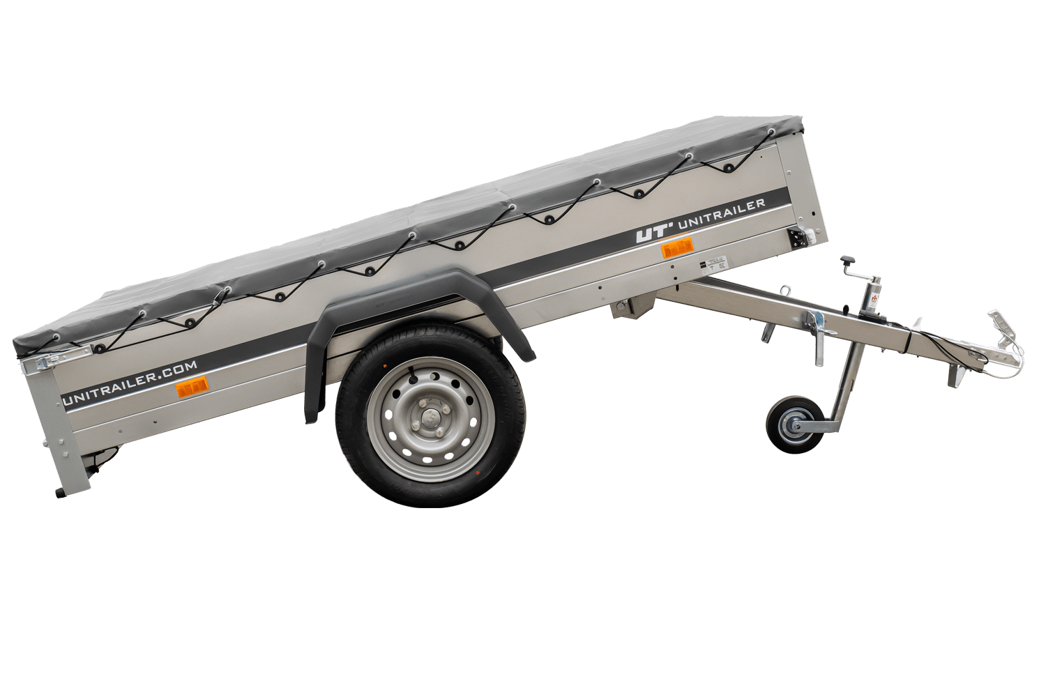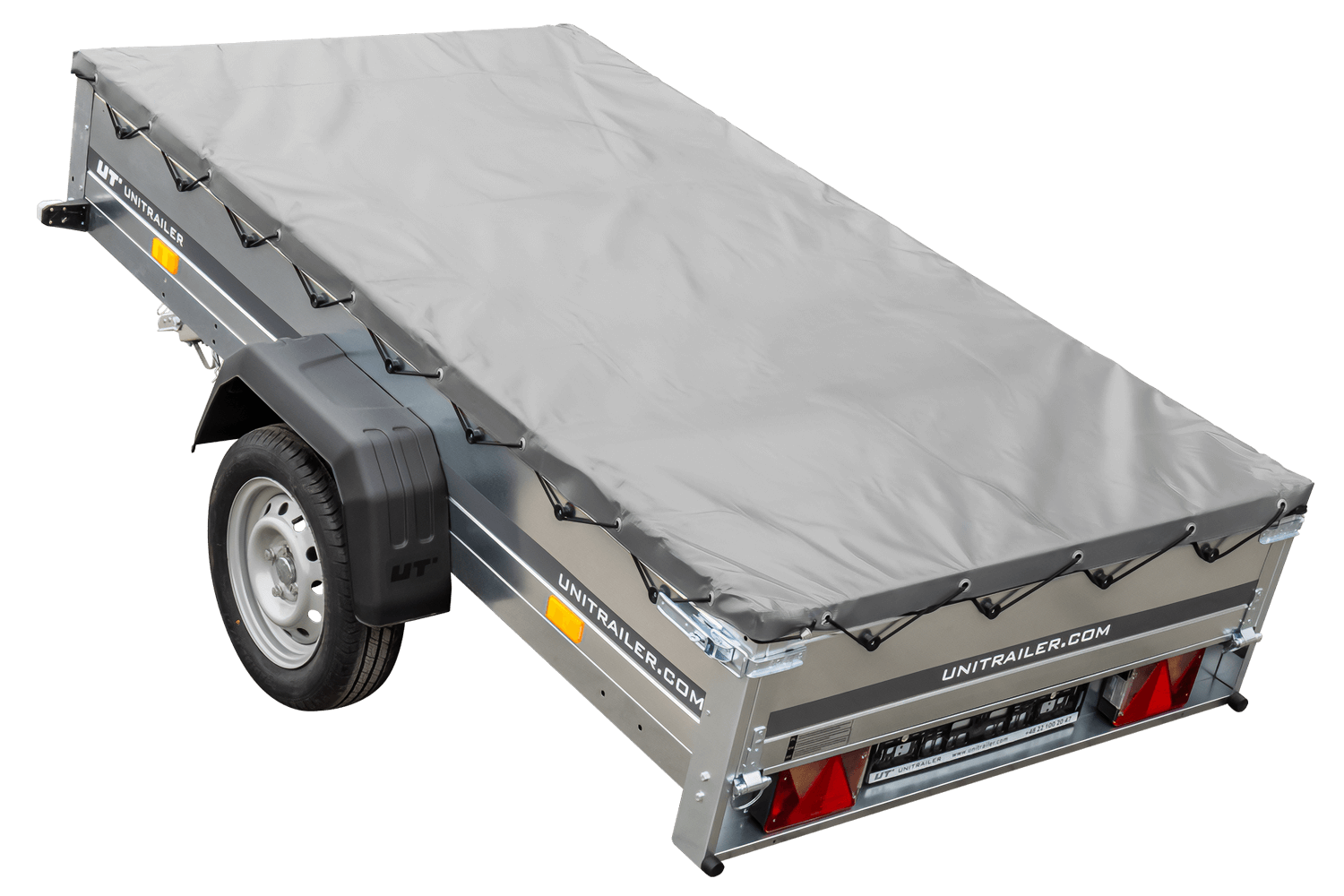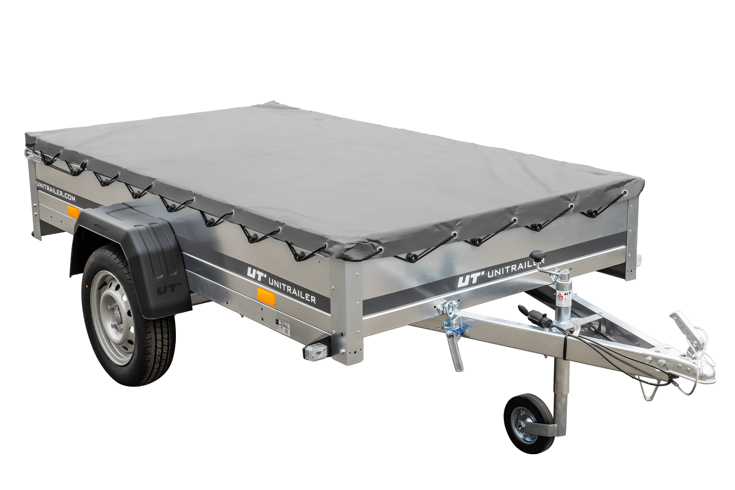 Rimorchio con telo fino a 750 kg Unitrailer Garden Trailer 230 KIPP con ruotino di appoggio e telo piatto grigio