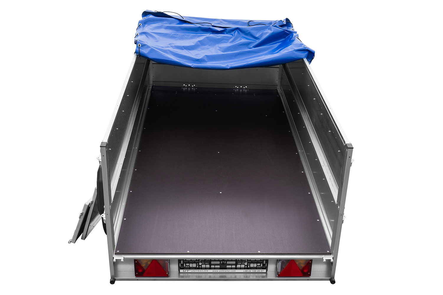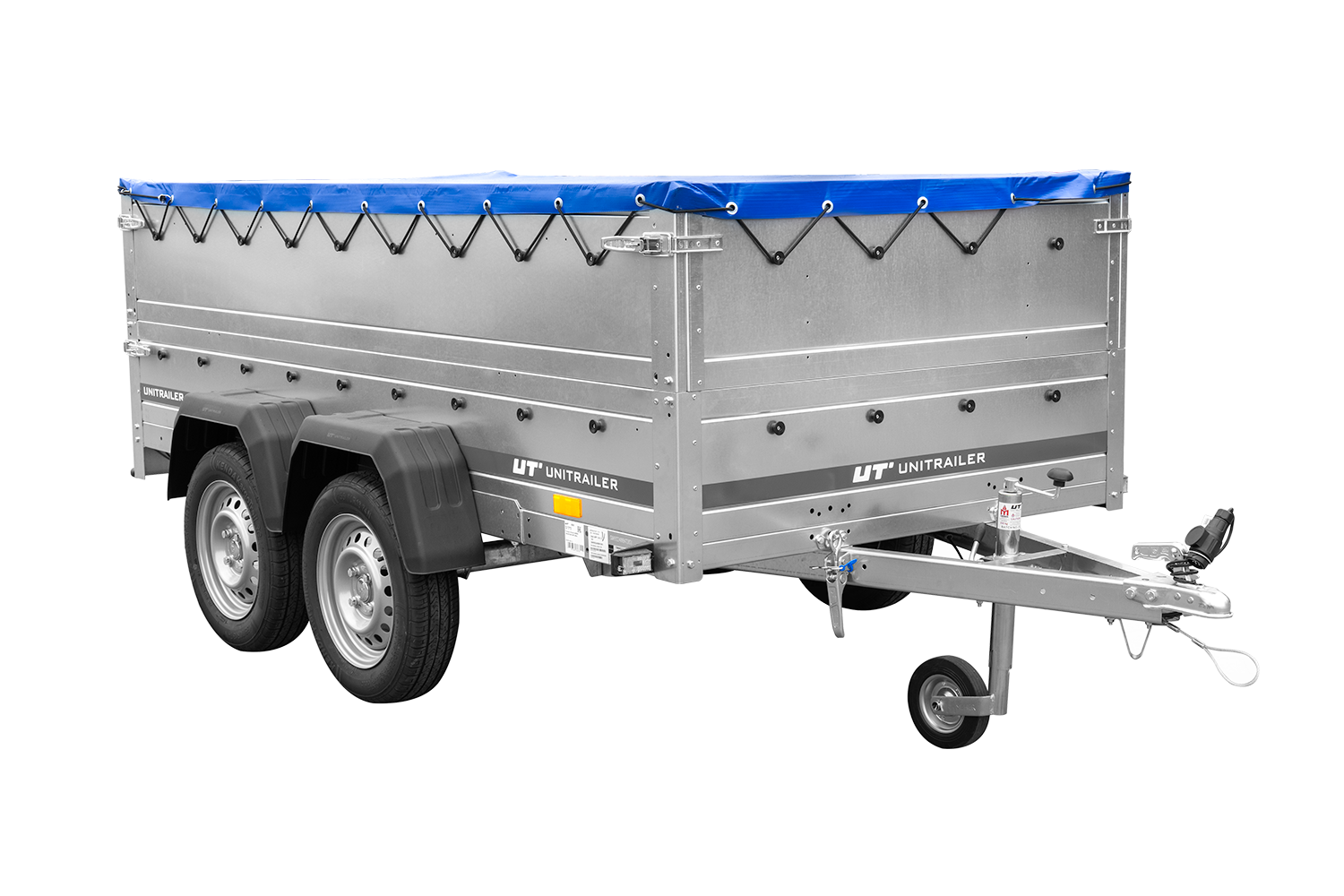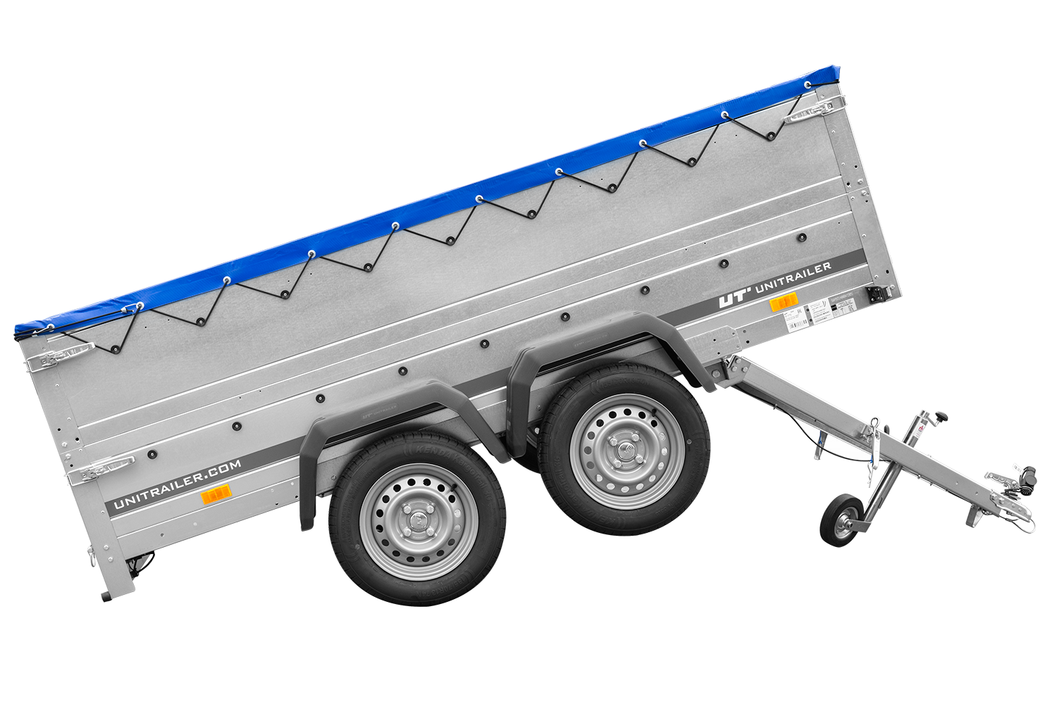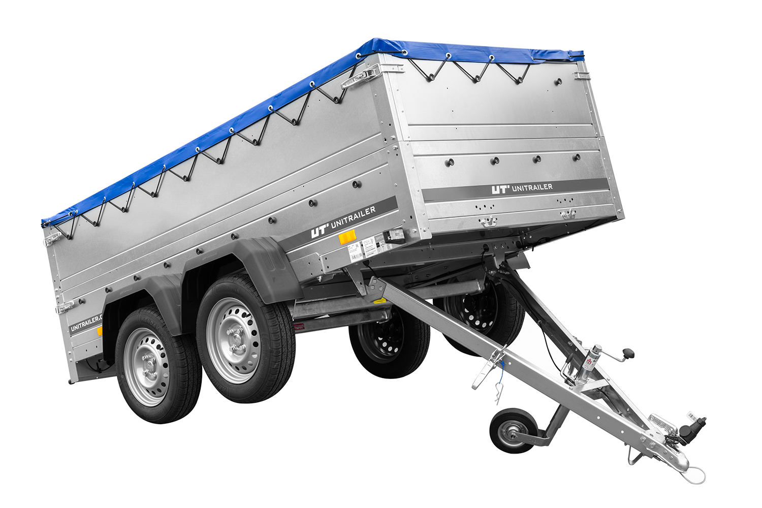 Rimorchio leggero biasse UNITRAILER Garden Trailer 264/2 KIPP con PTT fino a 750 kg. Superficie di trasporto di 2641x1256 mm. Sponda posteriore apribile. Grazie al timone basculante, può essere posizionato verticalmente sulla sponda posteriore in qualsiasi posto. Inoltre, grazie alla possibilità di kipping, permette un comodo scarico di merci sfuse che normalmente dovrebbero essere scaricate manualmente. Il rimorchio è dotato di sovrasponde, che aumentano l'altezza di carico. Le sovrasponde possono essere facilmente rimosse per ridurre il peso del rimorchio.