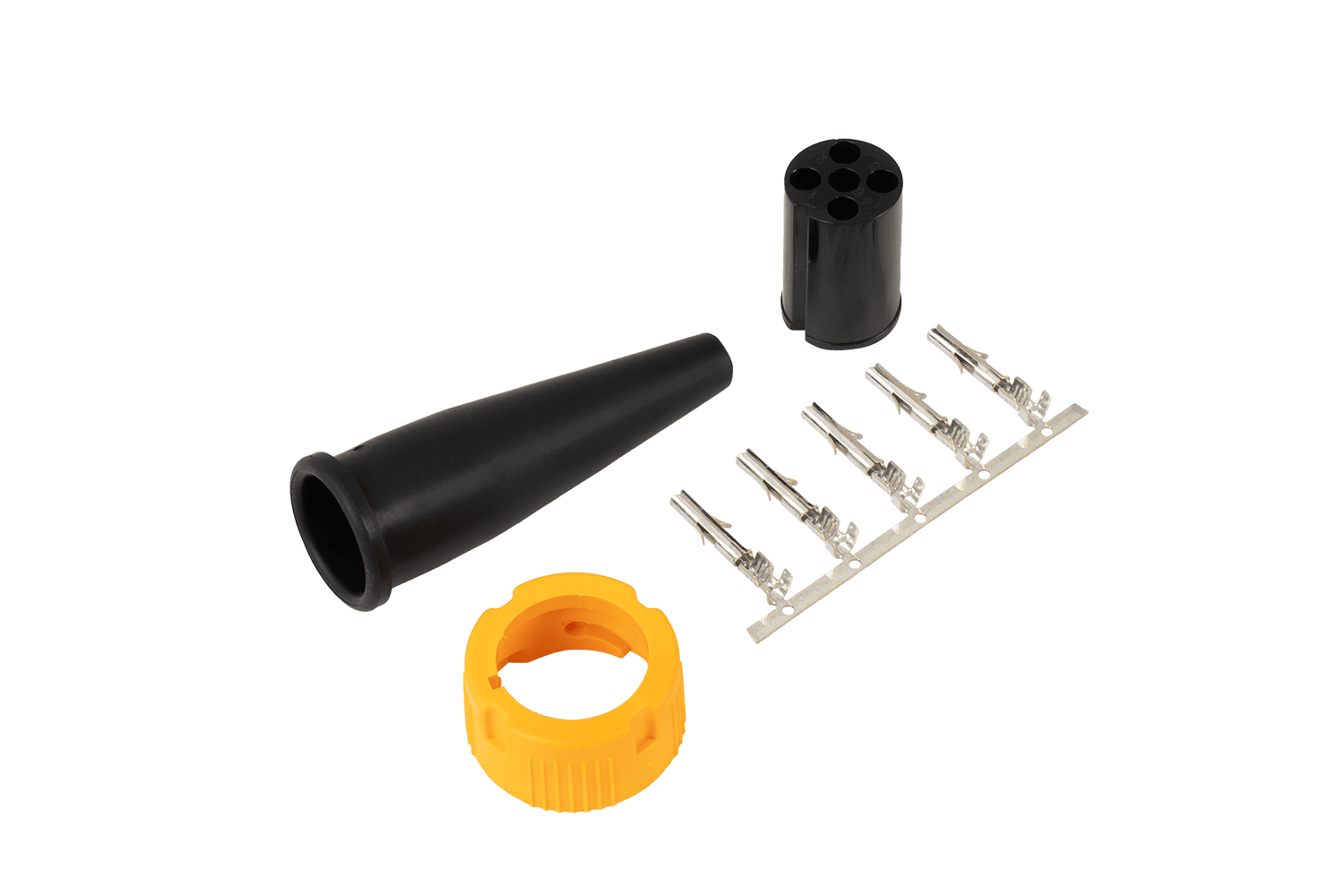 Connettore a baionetta a 5 poli per fanali posteriori di rimorchi e carri attrezzi. Il set comprende: