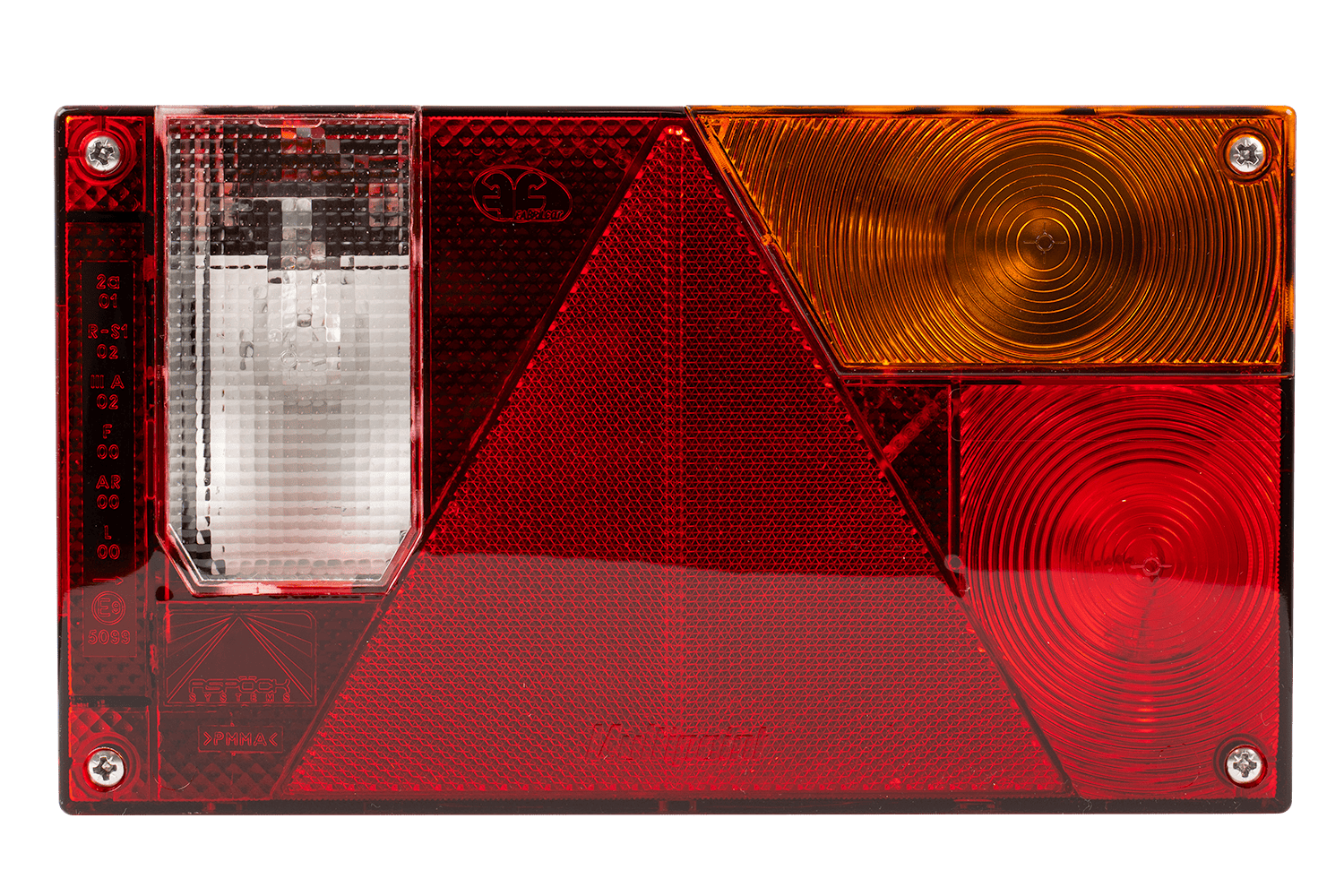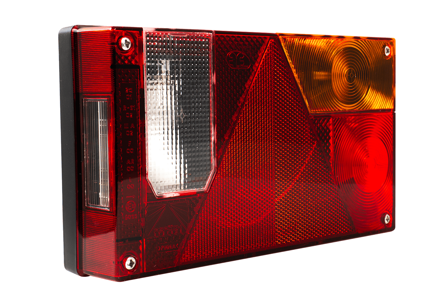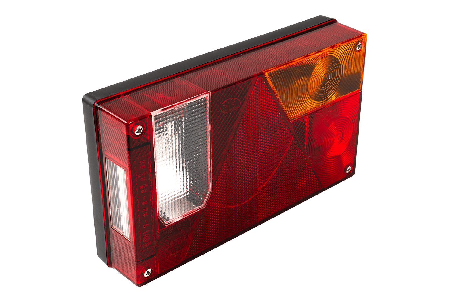 - Fanale posteriore Multipoint I per montaggio sul lato destro. Ha le seguenti funzioni: luce di posizione, luce stop, luce di retromarcia, luce targa, indicatore di direzione e catarifrangente. Per l'uso in rimorchi, camion e macchine agricole.