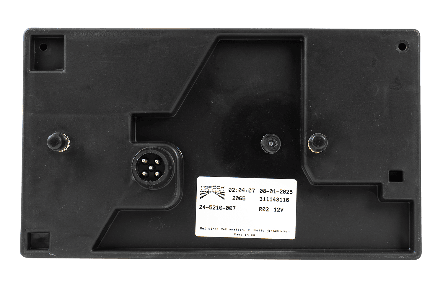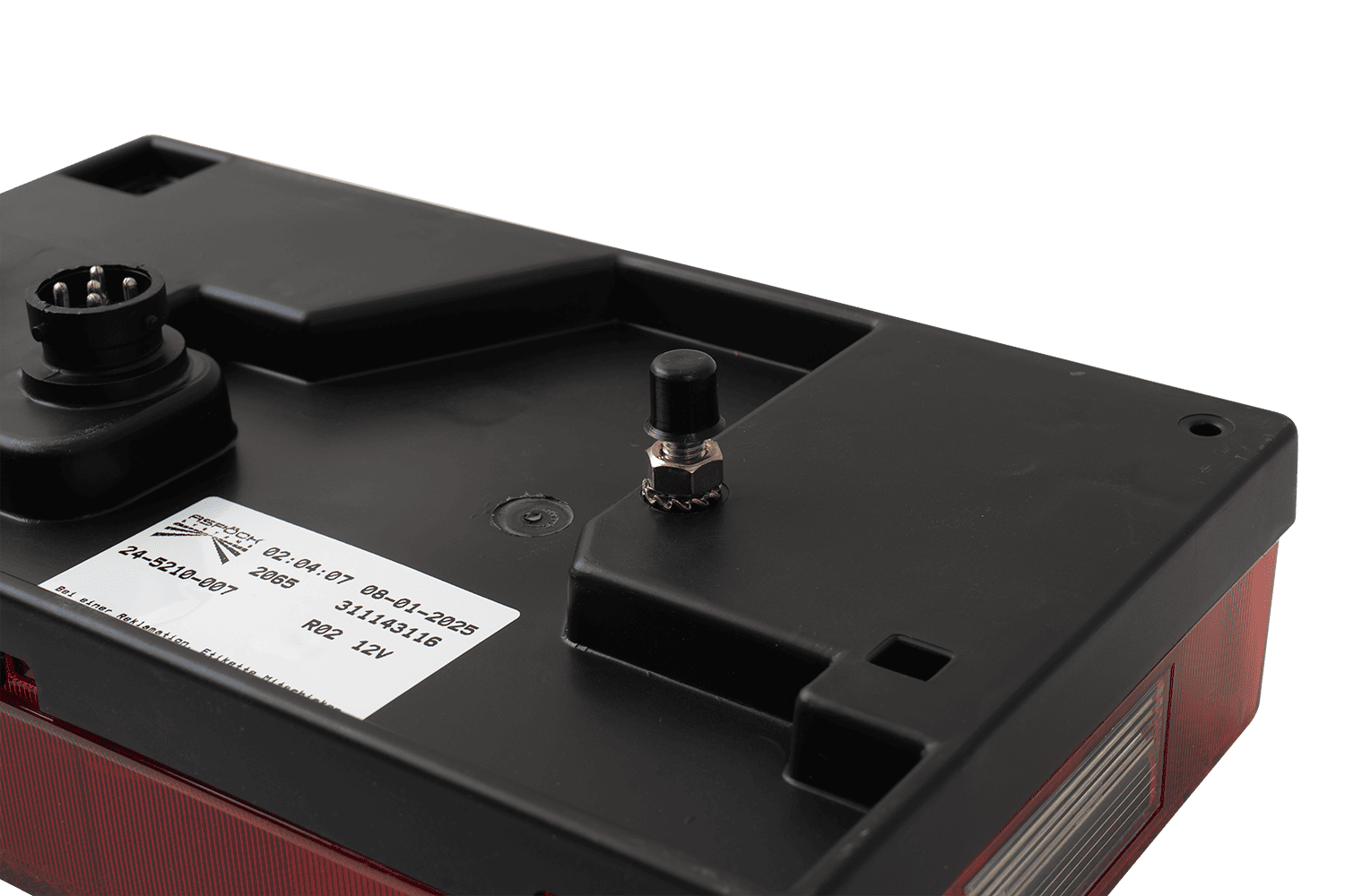 La lampada posteriore Multipoint I di ASPÖCK è destinata all'installazione sul lato destro del veicolo e ha le seguenti dimensioni: larghezza 240 mm, altezza 140 mm, profondità 52 mm . Dotato di connettore a baionetta a 5 pin , consente un'installazione facile e veloce in rimorchi, autobus e carri attrezzi .