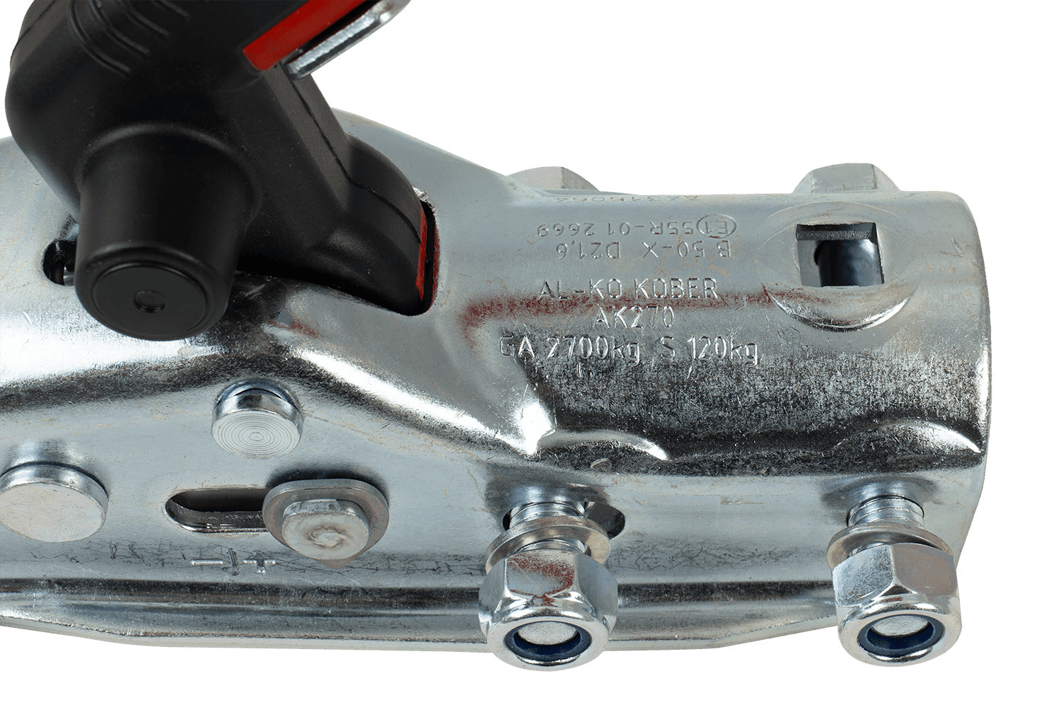 - Gancio a sfera AL-KO AK 270 progettato per rimorchi e carri attrezzi fino a 2.700 kg. Montato su un timone con profilo tubolare da 50 mm, offre un collegamento stabile con il veicolo trainante.