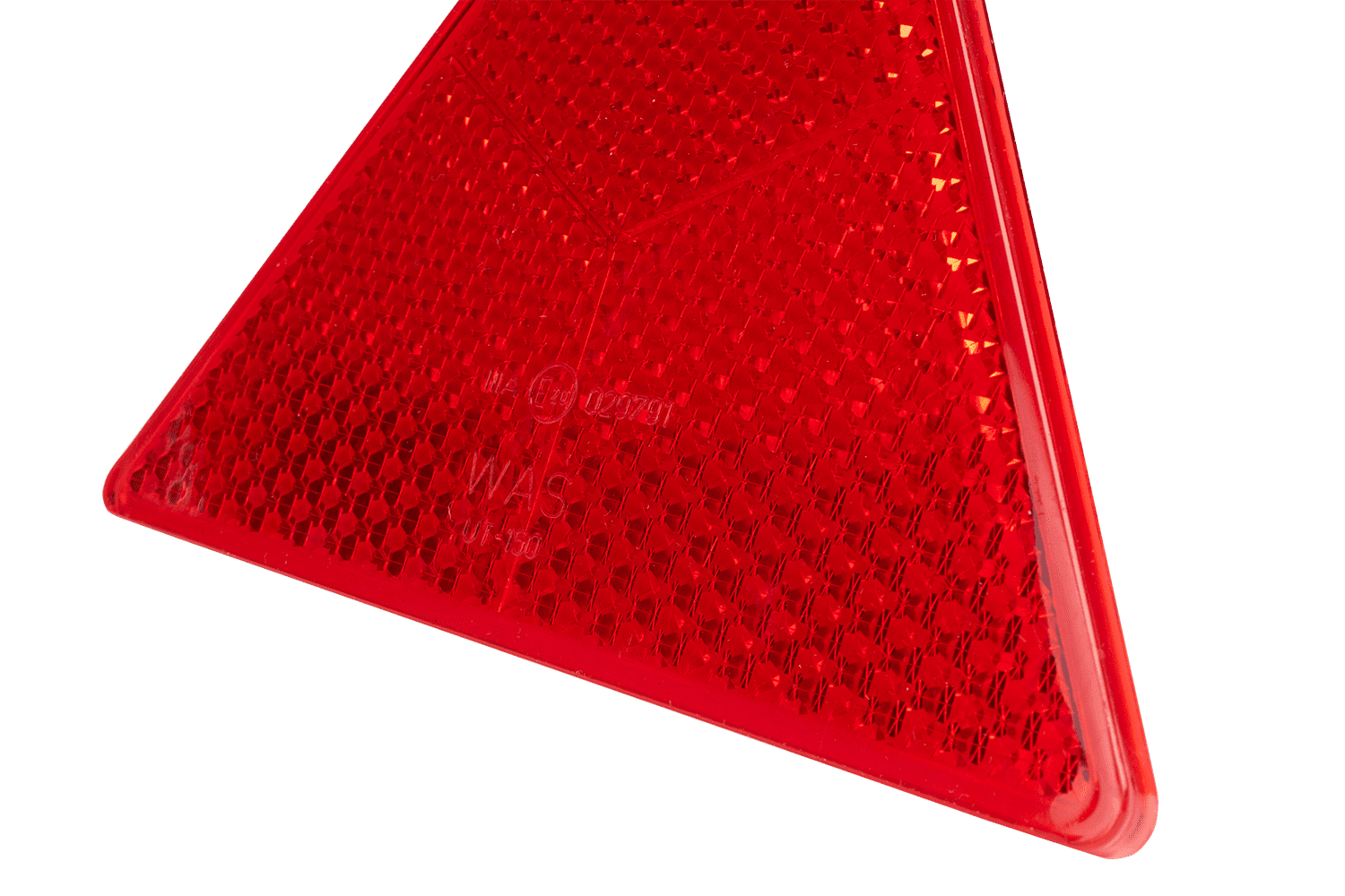 Triangolo d'emergenza rosso riflettente UT-150 di WAŚ. Il triangolo, largo 158 mm e alto 138 mm, è dotato di fori di montaggio che consentono un facile montaggio su varie superfici con viti, aumentando ulteriormente la sicurezza stradale. Il triangolo è omologato E20 IIIA, il che ne conferma la rispondenza alle norme di sicurezza. Può essere utilizzato su diverse superfici, come rimorchi, semirimorchi, veicoli per consegne, carri attrezzi, nonché su elementi strutturali dove è necessario aumentare la sicurezza in condizioni di scarsa visibilità, soprattutto di notte o in condizioni meteorologiche avverse .