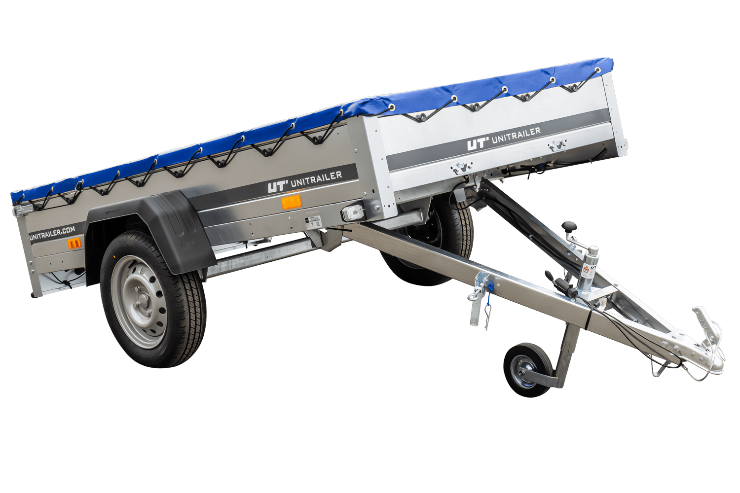 Inoltre, il nostro rimorchio con cassone ribaltabile e telone blu può essere ribaltato grazie a un timone basculante. Ciò consente un carico e scarico molto più confortevole che normalmente dovresti sollevare o lasciare. Un altro vantaggio di questa soluzione è la possibilità di riporre il rimorchio in posizione verticale con il timone ripiegato sulla sponda posteriore. Quindi non devi preoccuparti che il rimorchio occupi molto spazio nel garage o non si adatti a causa del timone sporgente.
