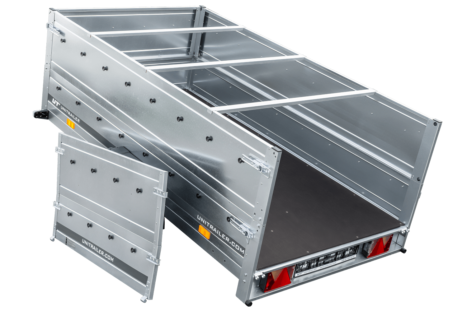 Garden Trailer 230 KIPP ha un pannello posteriore apribile. Questo rende estremamente facile il carico e lo scarico. È anche possibile trasportare merci o materiali lunghi con il bordo aperto o smontato. Basta rimuoverlo dai ganci e possiamo trasportare vari tipi di tubi, legno, compensato e altri oggetti lunghi!