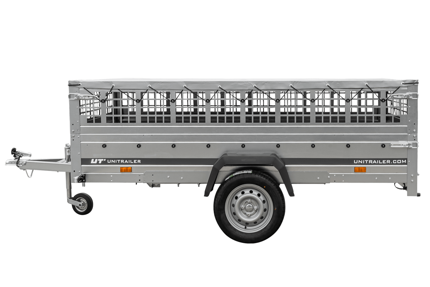 - Rimorchio ribaltabile con sponde in rete, modello Garden Trailer 264 KIPP, dimensioni: 264x125 cm, PTT fino a 750 kg. In set: un ruotino, sovrasponde in rete e telone. Consegna a domicilio, garanzia di 2 anni