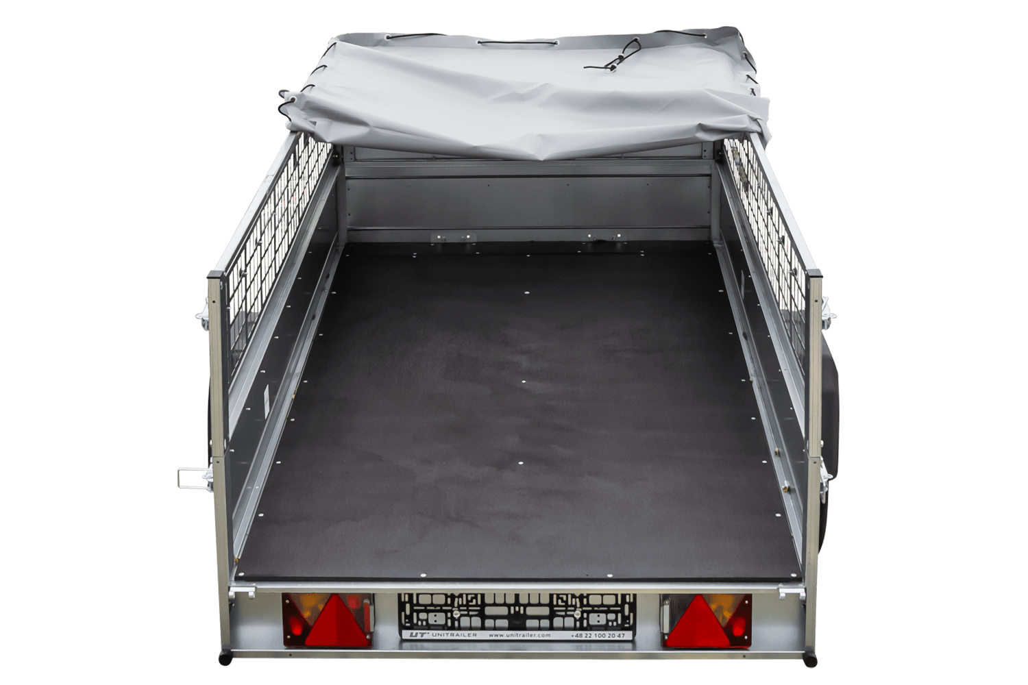 Rimorchio ribaltabile con sponde in rete della serie modello Garden Trailer 264 KIPP , dimensioni 264x125 cm con PTT massimo fino a 750 kg (possibilità di scelta). Il vantaggio dei rimorchi di questa serie è la possibilità di ripiegare il timone , grazie al quale possiamo riporre il rimorchio verticalmente sul lato posteriore . Con questa opzione riusciremo sicuramente a trovare più velocemente un posto dove riporlo . Il rimorchio è riccamente equipaggiato, il set comprende: ruota di supporto, sponde in rete e telone piatto grigio . Sponde in rete , ovvero doppie sponde che aumentano l'altezza di carico, zincate. Telo piatto grigio spesso, resistente allo strappo e che aumenta la protezione della merce trasportata.