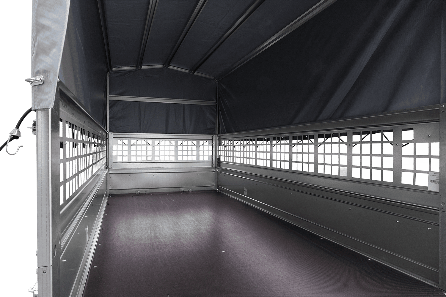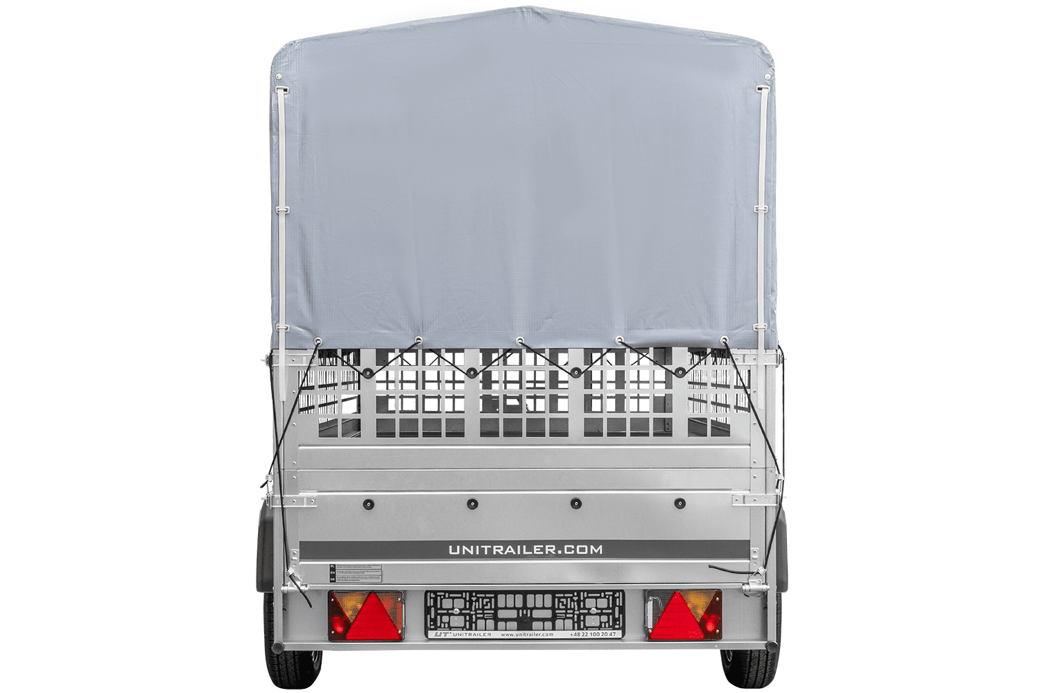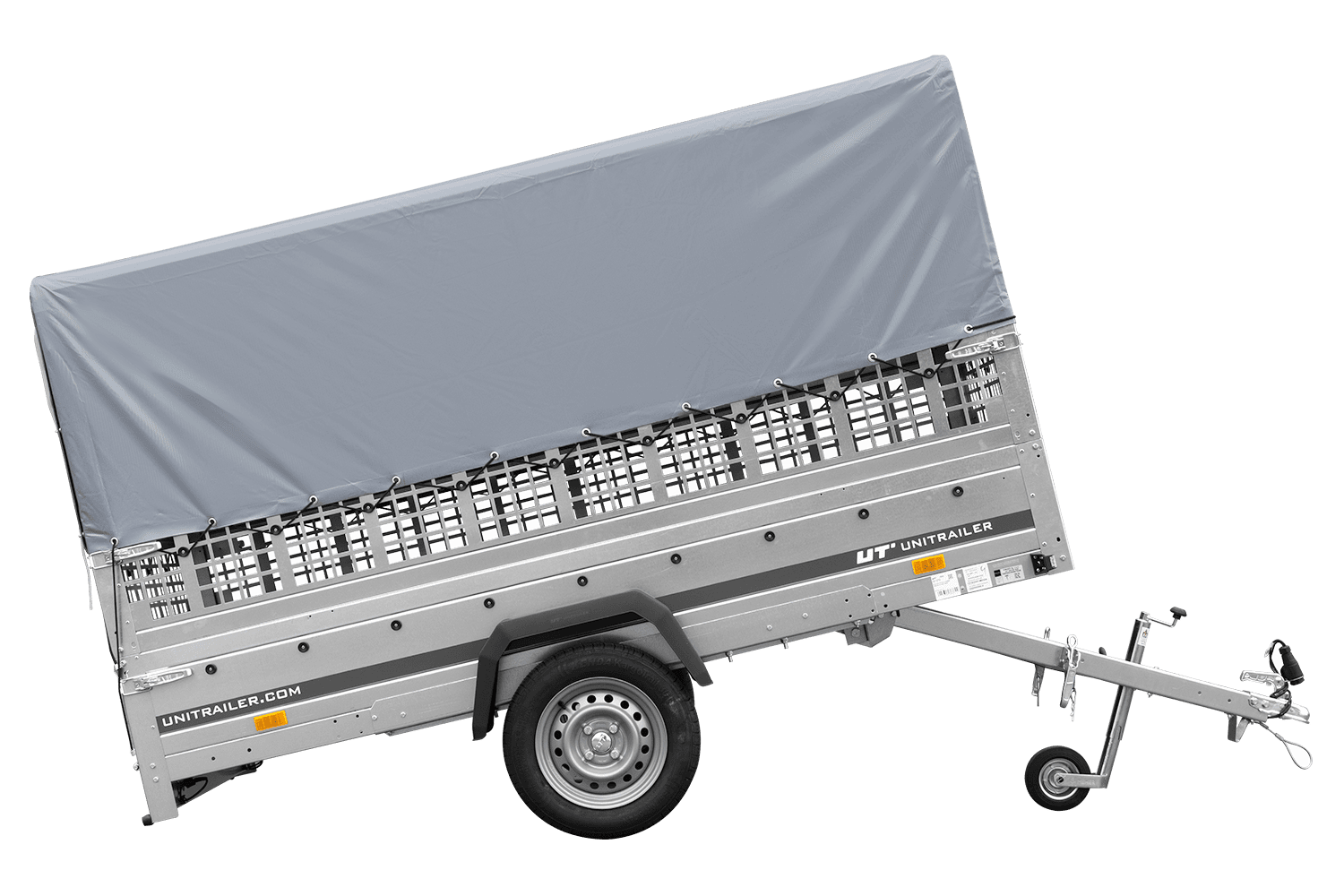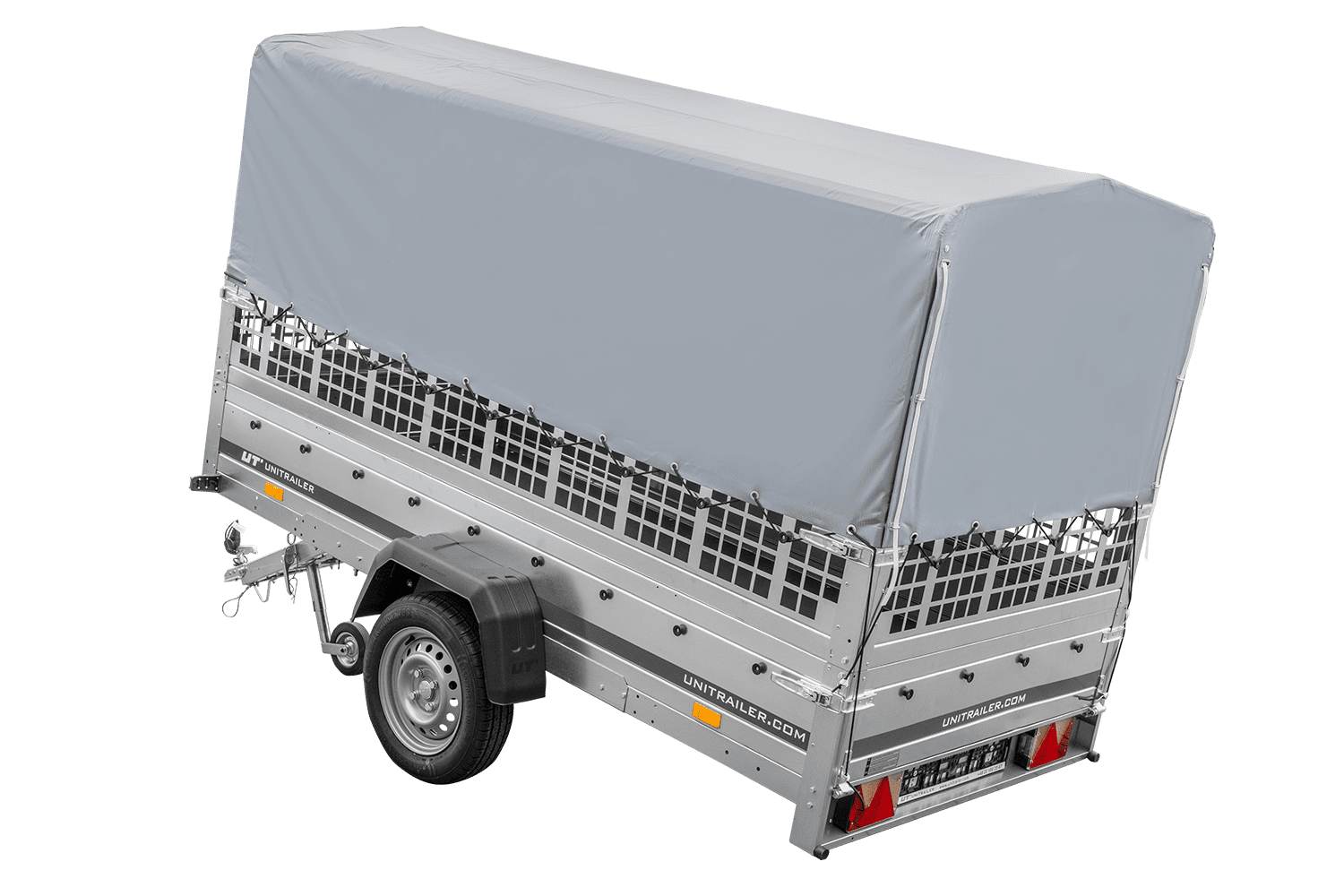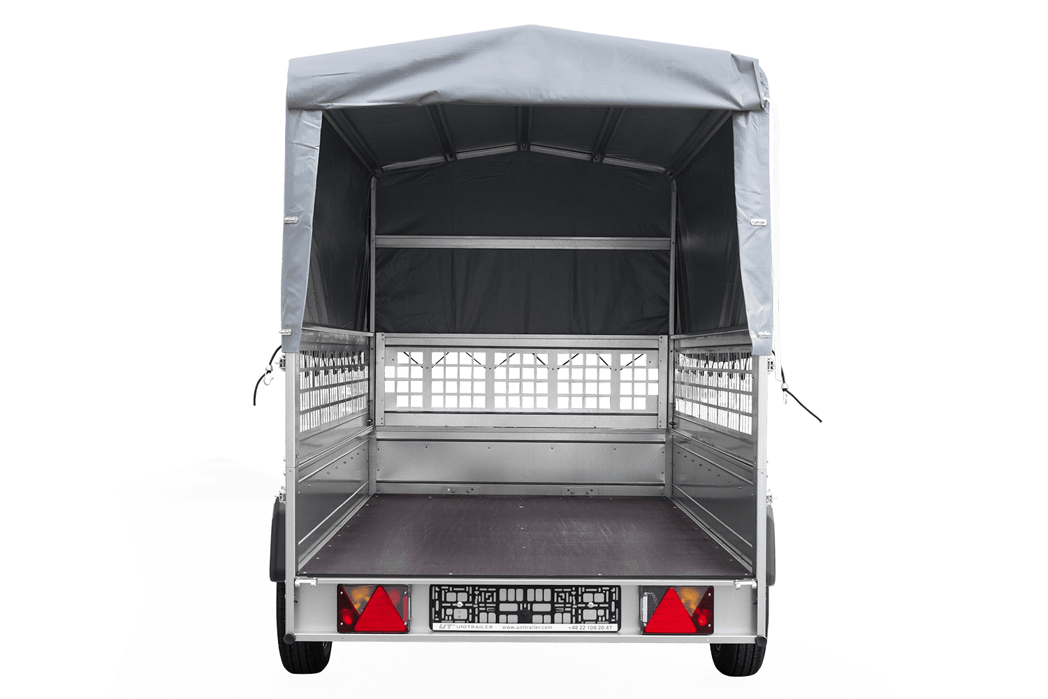 Rimorchio a un asse con timone ribaltabile della serie di modelli Garden Trailer 264 KIPP, dimensioni 264x125x30 cm. PTT massimo fino a 750 kg (selezionabile). Il vantaggio dei rimorchi di questa serie è la possibilità di ripiegare il timone, grazie al quale siamo in grado di riporre il rimorchio verticalmente sulla sponda posteriore. Il rimorchio è completamente attrezzato, il set comprende: un ruotino di appoggio, sponde in rete, centina H-800 con copertura grigia. Sponde in rete, ovvero doppie sponde che aumentano l'altezza di carico, zincate. La centina H-800 stabile e durevole.
