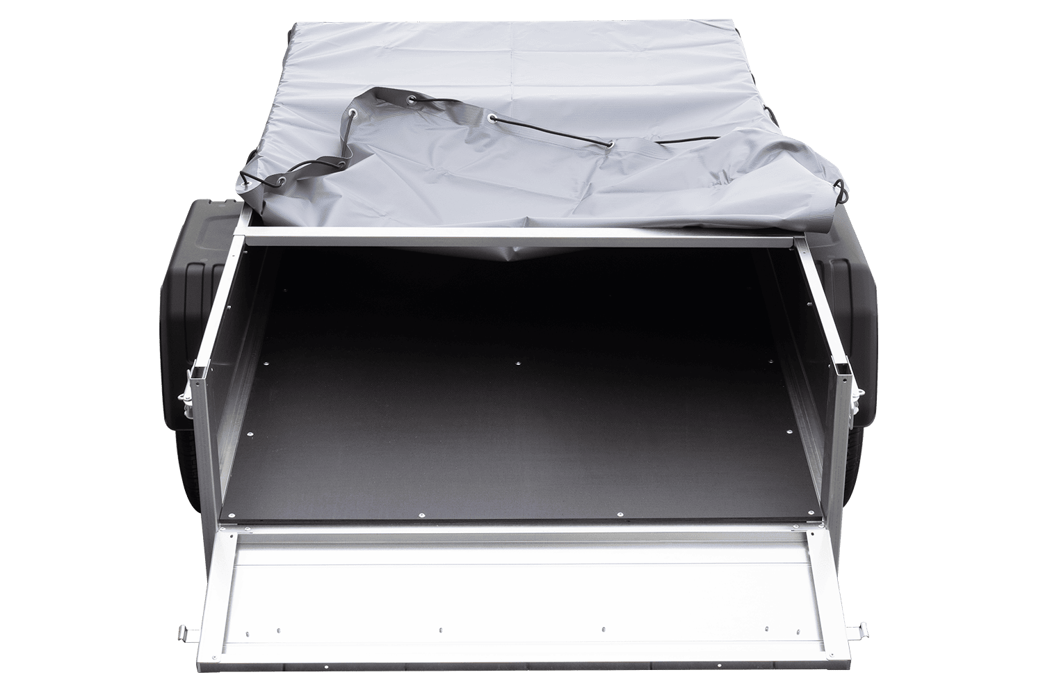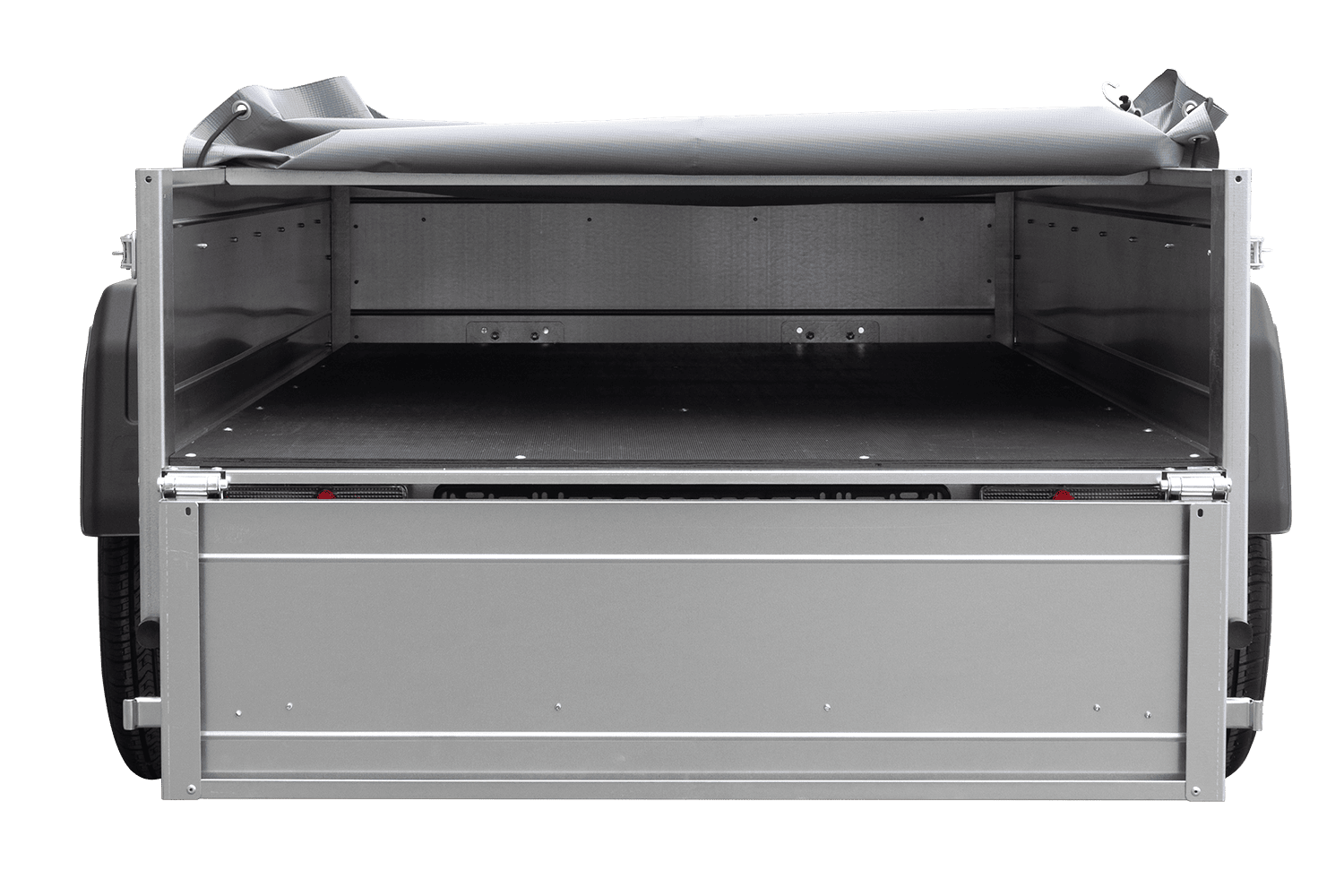 Il rimorchio per auto Garden Trailer 200 Kipp con telone grigio e telaio h-0 è un comodo trasporto