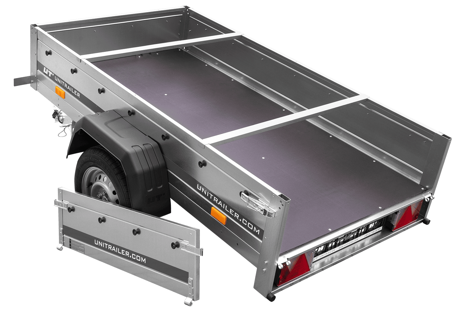 - TELAIO - asse di torsione del produttore riconosciuto ALKO - realizzato su misura per Unitrailer. Dimensioni ruote: 155/70 R13. Timone inclinabile tipo "V", che può essere ripiegato sotto il pavimento del rimorchio in qualsiasi momento.