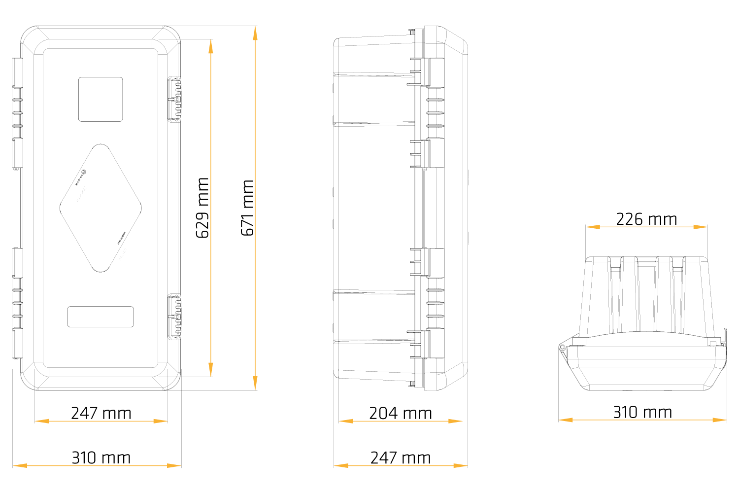 La cassetta porta estintore è realizzata in polipropilene, nylon e policarbonato di alta qualità, che garantiscono un'eccezionale durata e resistenza ai danni meccanici . Questi materiali offrono un'eccellente protezione contro fuoco, acqua, polvere, carburante, raggi UV e temperature estreme , rendendo la cassetta ideale per condizioni operative difficili. La struttura solida protegge il contenuto dall'influenza di fattori esterni dannosi e la finestra di ispezione consente un rapido controllo delle condizioni dell'estintore, garantendo comfort e sicurezza d'uso.
