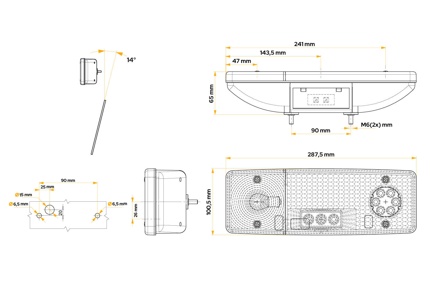 Il fanale posteriore omologato E20 soddisfa i requisiti degli standard europei di sicurezza e qualità, confermando la sua conformità alle normative sull'illuminazione dei veicoli. L'approvazione conferma che la lampada ha superato rigorosi test tecnici, tra cui: efficienza luminosa, durata e sicurezza d'uso . Grazie a questa omologazione è possibile montare la lampada sia in verticale che in orizzontale , il che ne aumenta la versatilità. È ideale per l'uso su veicoli commerciali, rimorchi e macchinari in tutta l'Unione Europea, garantendo affidabilità in una varietà di condizioni operative.