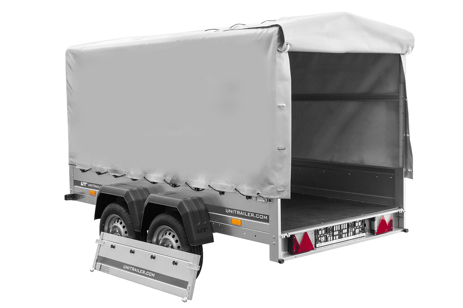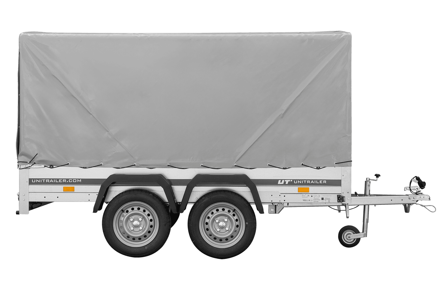 Rimorchio a due assi 264x125 UNITRAILER GARDEN 264/2 KIPP con telaio H-1100 e telone grigio