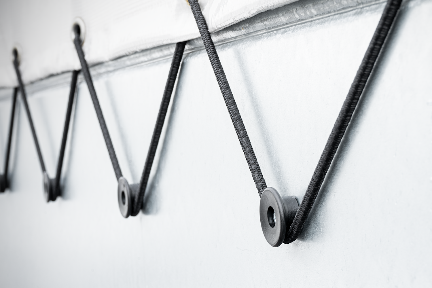 I rulli laterali in plastica per rimorchi sono una soluzione semplice ma robusta che consente un fissaggio stabile dei cavi. Il loro utilizzo principale è quello di fissare coperture, reti e teloni al lato del rimorchio tramite cavi elastici.