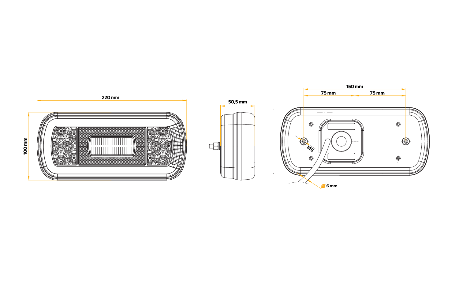 - Fanale posteriore a LED FT-130 per il montaggio sul lato sinistro o destro. Offre sei funzioni: luce di posizione, luce di retromarcia, luce stop, luce targa, indicatore di direzione e catarifrangente. Perfetto per l'uso su rimorchi e camion.