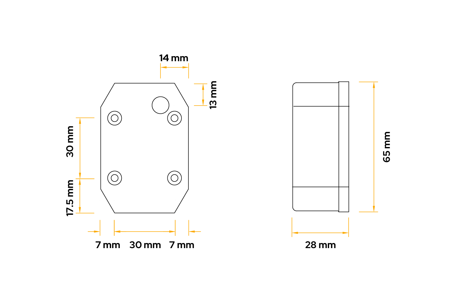 La luce di posizione a LED FLEXIPOINT di ASPÖCK, progettata per il montaggio sia sul lato sinistro che destro del veicolo , è caratterizzata dalle seguenti dimensioni: larghezza 65 mm, altezza 44 mm, profondità 28 mm . Progettato per funzionare a una tensione di 12 V , può essere utilizzato in veicoli per le consegne, rimorchi, semirimorchi e camper. Dotato di staffa di montaggio da 100 mm e di cavo piatto da 0,5 m , consente un'installazione facile e veloce. Grazie all'utilizzo della tecnologia LED la lampada garantisce elevate prestazioni, durata ed efficienza energetica, garantendo la sicurezza in diverse condizioni stradali.