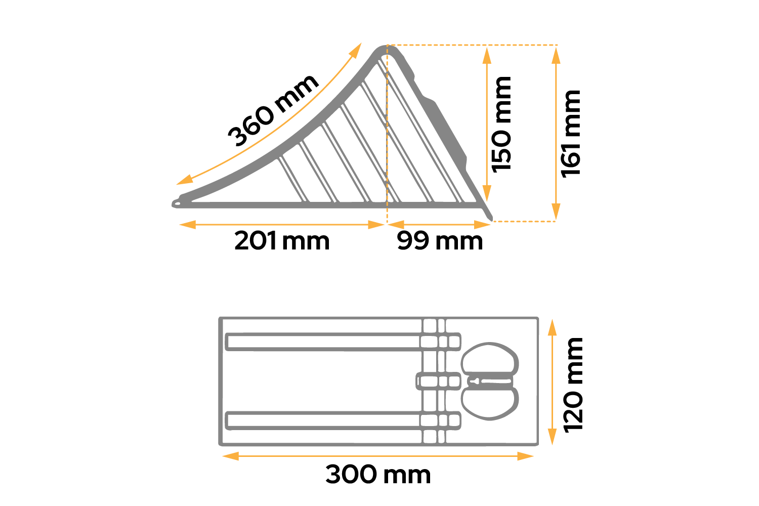 - Cunei da ruota AL-KO, alti 161 mm. Realizzato in metallo zincato. Il cuneo può essere utilizzato con pneumatici con raggio fino a 360 mm, con un carico massimo di 1600 kg.