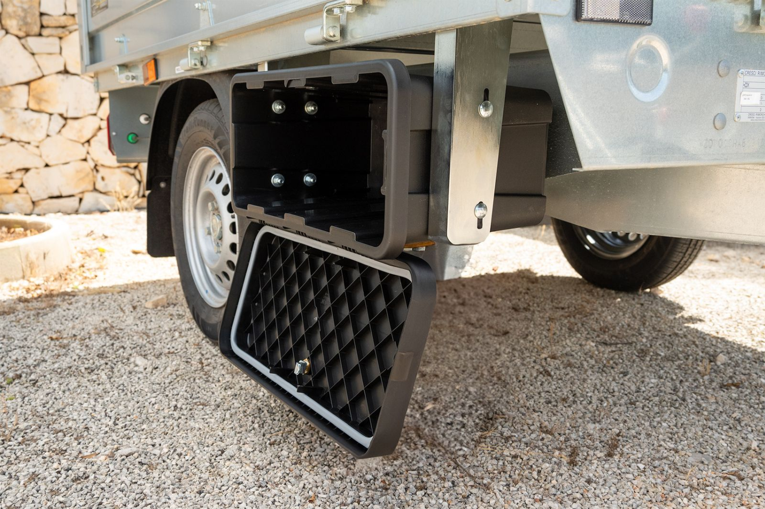 La cassetta degli attrezzi consente di riporre in sicurezza attrezzi e chiavi inglesi, cinghie di trasporto e dispositivi di fissaggio, fune da traino, cunei per ruote e il kit ADR . Questa organizzazione garantisce un facile accesso agli oggetti necessari in ogni situazione, sia durante l'uso quotidiano del veicolo che in caso di incidenti stradali o interventi di manutenzione imprevisti.