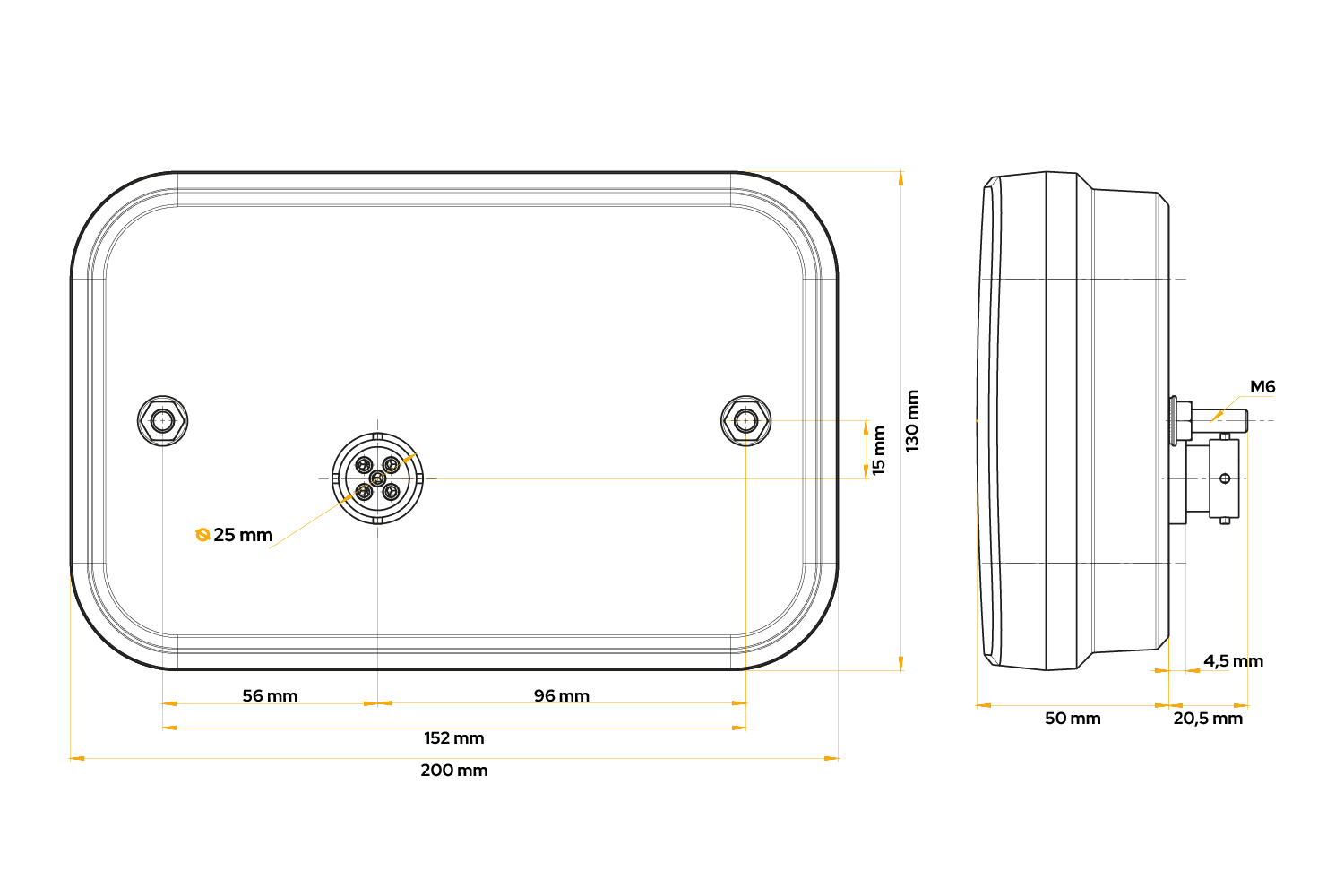 Il fanale posteriore LED CANBUS FT-270 di FRISTOM, progettato per il montaggio sul lato destro del veicolo , ha le seguenti dimensioni: larghezza 200 mm, altezza 130 mm, profondità 50 mm . Progettato per funzionare in un intervallo di tensione di 12 V , può essere utilizzato in rimorchi leggeri, autobus e roulotte, il che ne evidenzia l'universalità. Dotato di connettore a baionetta a 5 pin , consente un'installazione facile e veloce. Grazie all'impiego della tecnologia LED, la lampada garantisce elevate prestazioni, durata ed efficienza energetica, garantendo la sicurezza in diverse condizioni stradali. La struttura della lampada è ermetica, resistente agli urti e ai danni meccanici, ed è inoltre dotata di protezione elettrica contro l'inversione di polarità, il che ne aumenta ulteriormente l'affidabilità in condizioni operative difficili.