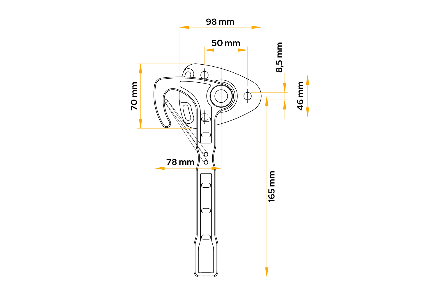 La staffa della cerniera laterale è realizzata in ghisa zincata di alta qualità, che garantisce elevata rigidità e resistenza ai danni meccanici . Il rivestimento in zinco protegge efficacemente l'elemento dalla corrosione e dagli effetti dannosi di fattori esterni come umidità, sale stradale e condizioni meteorologiche variabili. Ciò garantisce lunga durata e affidabilità nell'uso quotidiano .