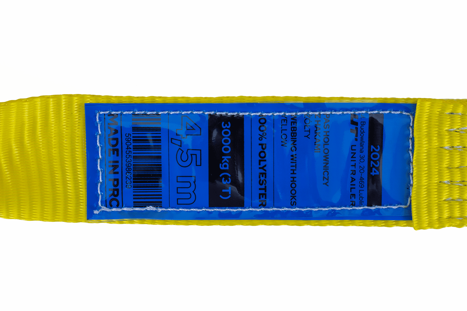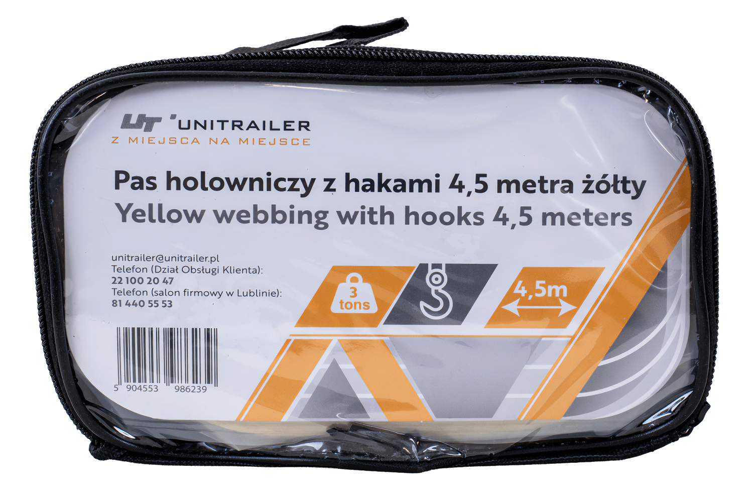 UNITRAILER ha a cuore la qualità e la sicurezza dei propri prodotti, per questo la cinghia di traino è dotata di ganci in acciaio resistenti e protetti dalla corrosione. Le marcature chiare sul nastro e un'etichetta informativa in polacco e inglese facilitano l'identificazione dei parametri tecnici. Questo modello è un equipaggiamento pratico ed essenziale per ogni conducente, che aumenta la sicurezza e la preparazione alle situazioni impreviste sulla strada.