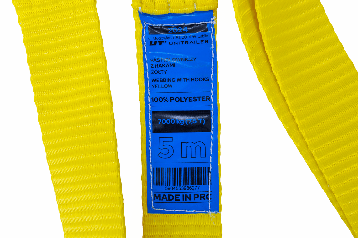 UNITRAILER ha a cuore la qualità e la sicurezza dei propri prodotti, per questo la cinghia di traino è dotata di ganci in acciaio resistenti e protetti dalla corrosione. Le marcature chiare sul nastro e un'etichetta informativa in polacco e inglese facilitano l'identificazione dei parametri tecnici. Questo modello è un equipaggiamento pratico ed essenziale per ogni conducente, che aumenta la sicurezza e la preparazione alle situazioni impreviste sulla strada.