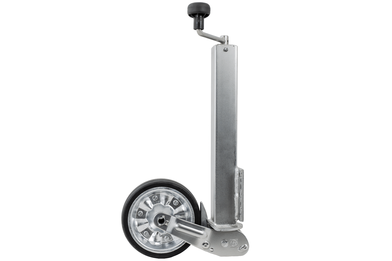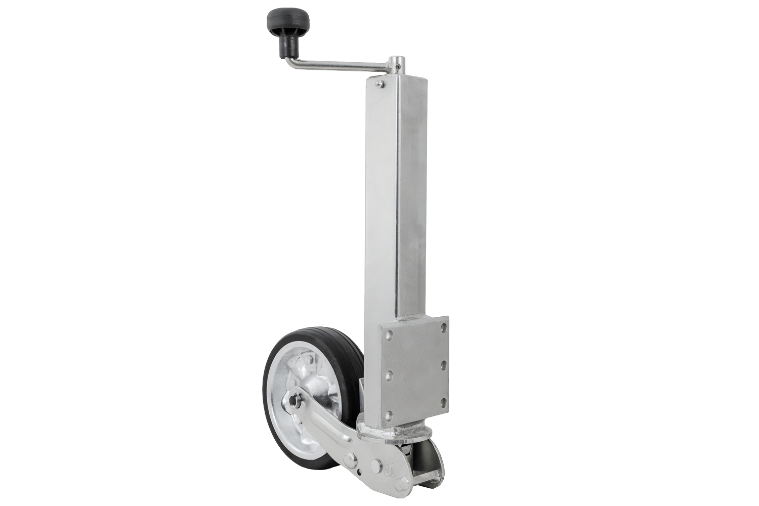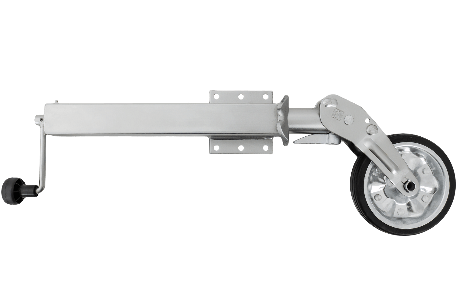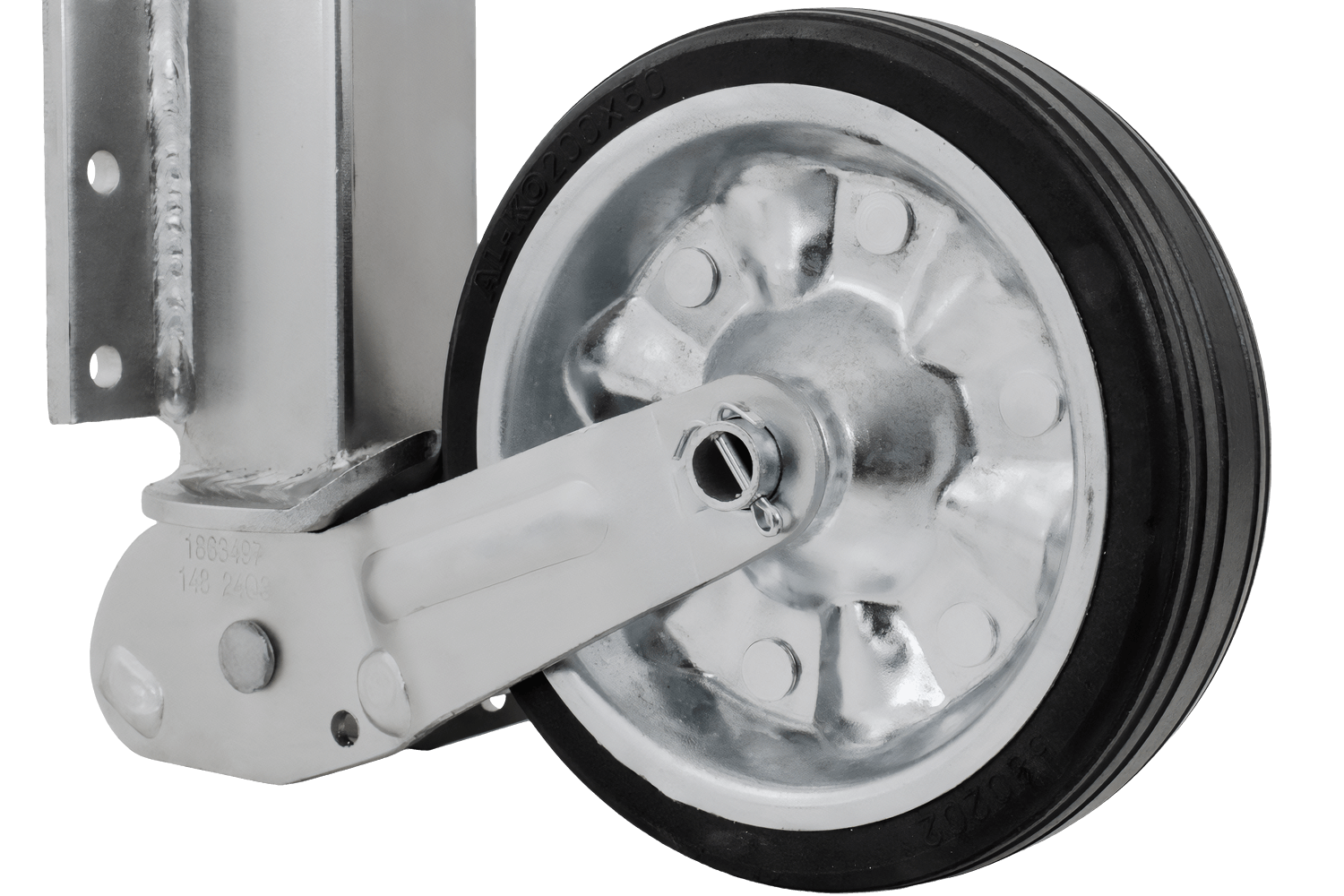 La ruota è elettrozincata , proteggendola efficacemente dalla corrosione e dalle intemperie. Il meccanismo di sollevamento è completamente automatico, semplificando notevolmente l'uso quotidiano. Grazie alla robusta struttura in gomma piena, al cerchio in acciaio e ai cuscinetti scorrevoli, la ruota di supporto garantisce manovre confortevoli anche su terreni sconnessi, mentre la piastra di montaggio garantisce un montaggio stabile sul timone del rimorchio .