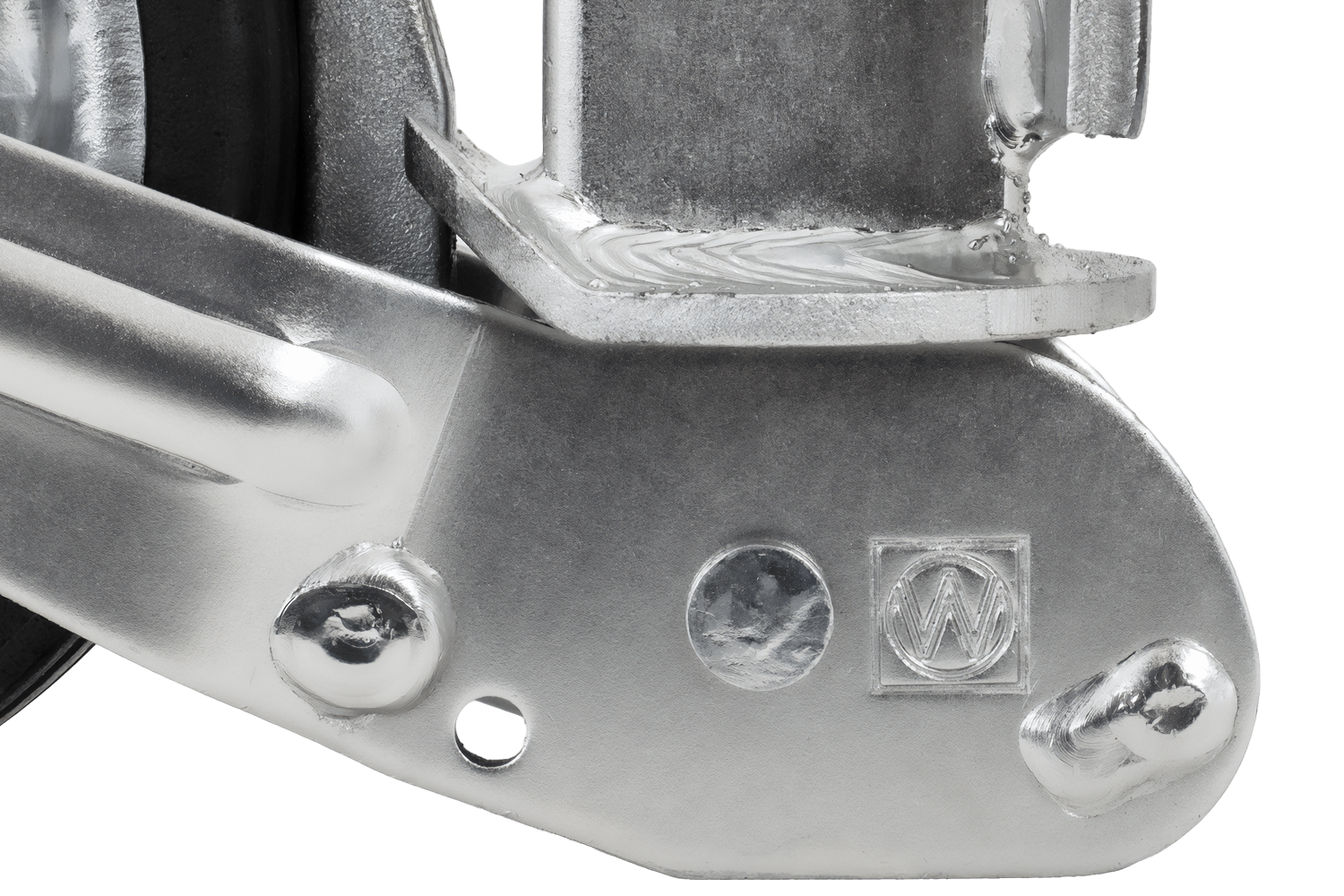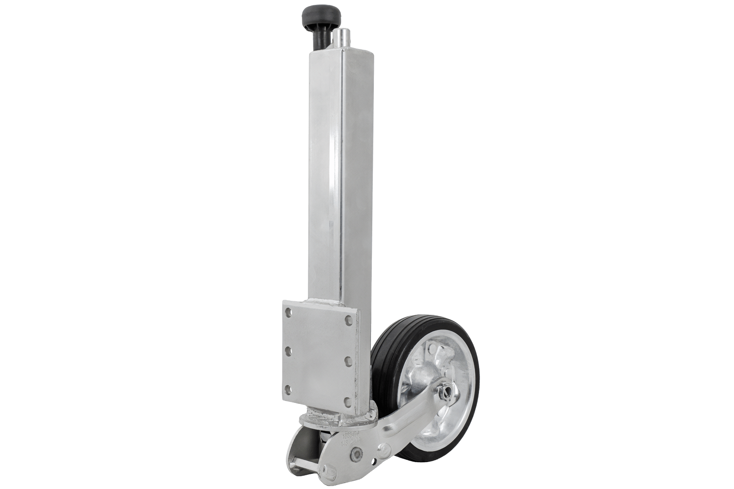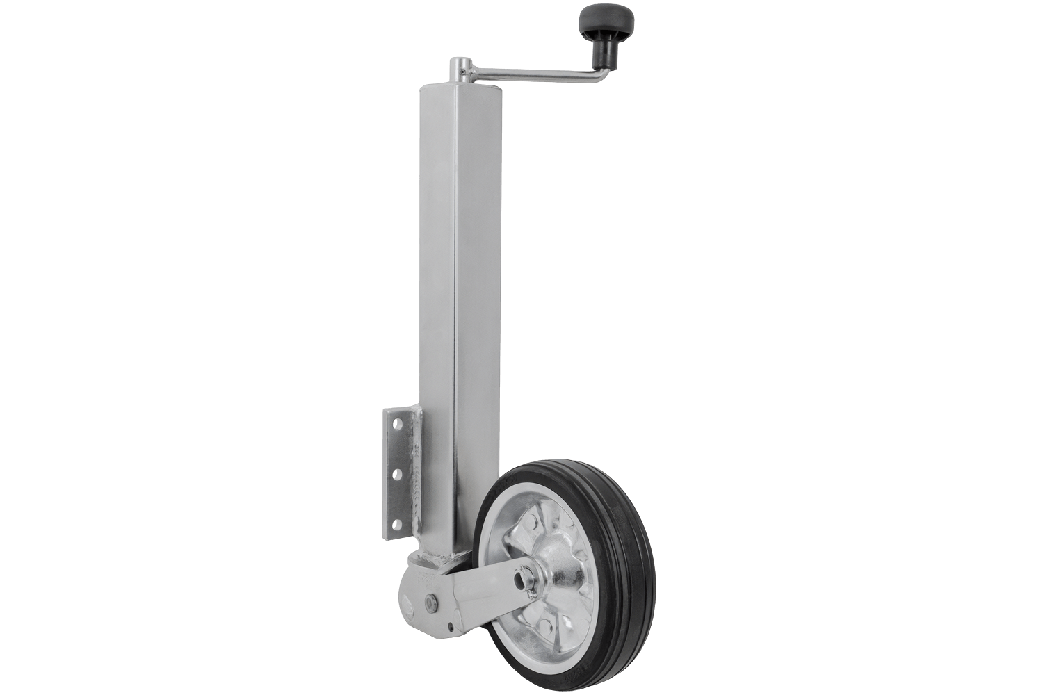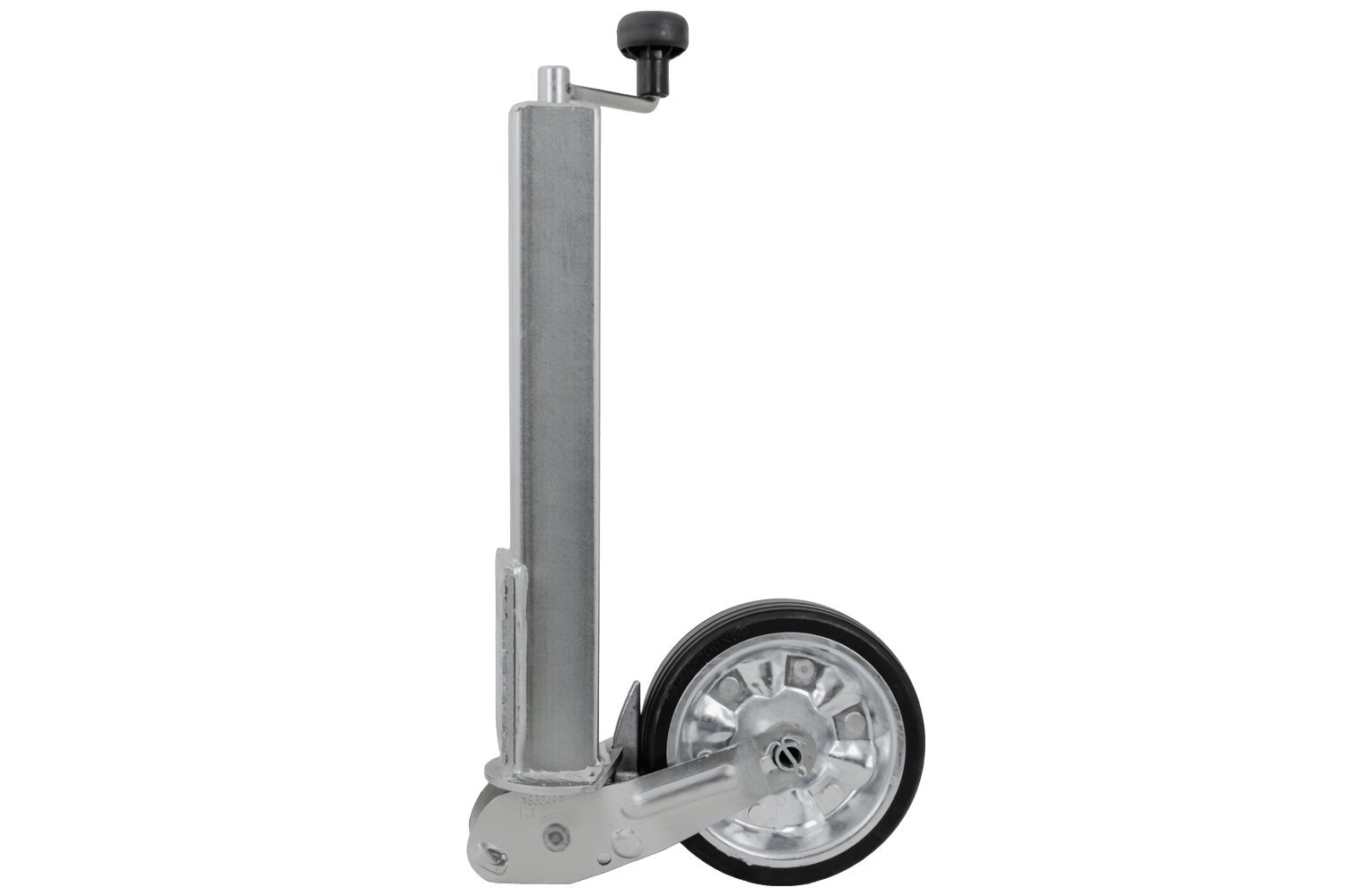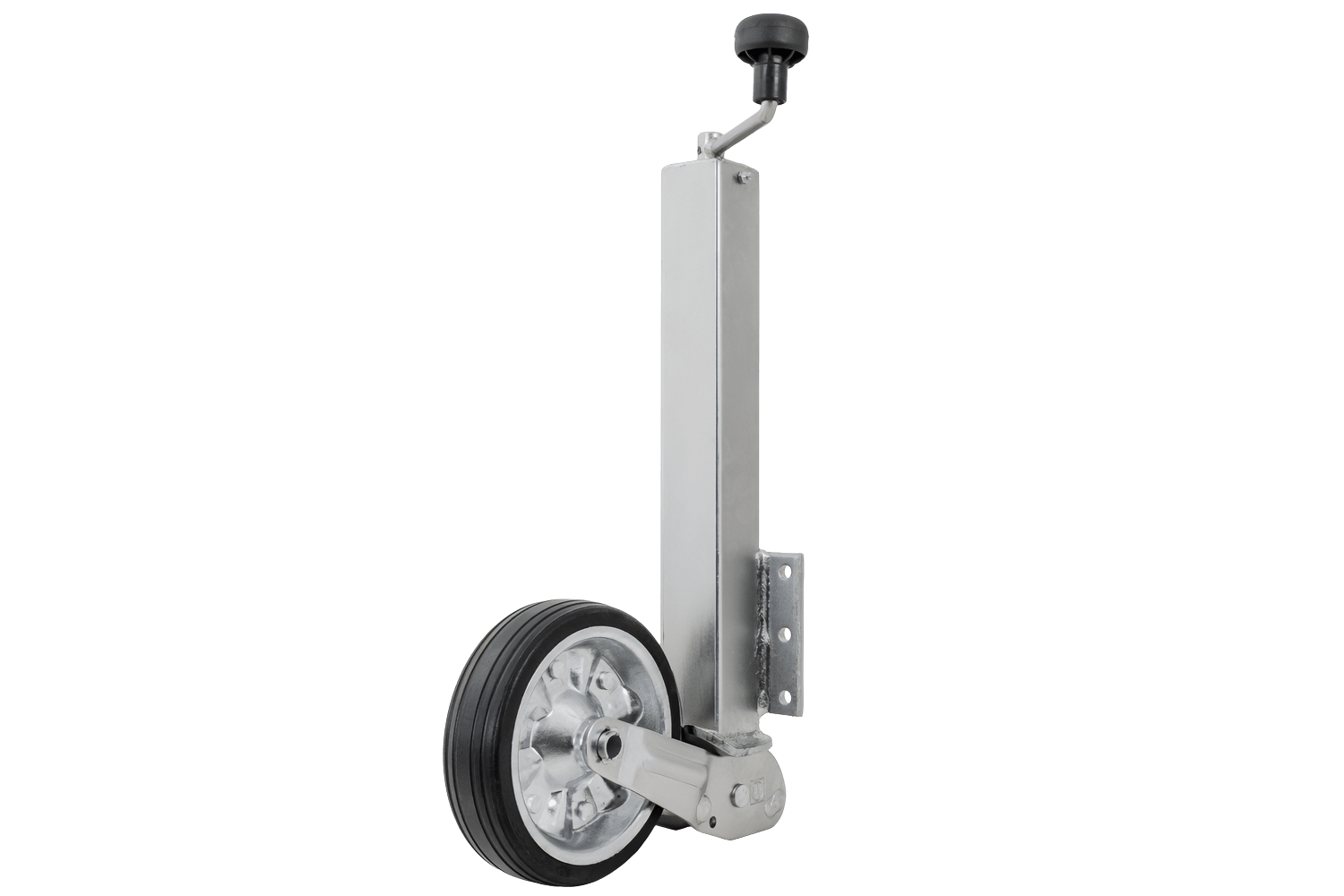 La ruota è elettrozincata , proteggendola efficacemente dalla corrosione e dalle intemperie. Il meccanismo di sollevamento è completamente automatico, semplificando notevolmente l'uso quotidiano. Grazie alla robusta struttura in gomma piena, al cerchio in acciaio e ai cuscinetti scorrevoli, la ruota di supporto garantisce manovre confortevoli anche su terreni sconnessi, mentre la piastra di montaggio garantisce un montaggio stabile sul timone del rimorchio .