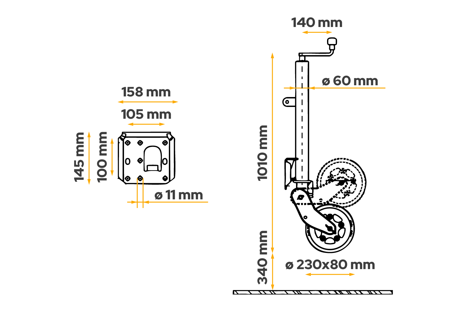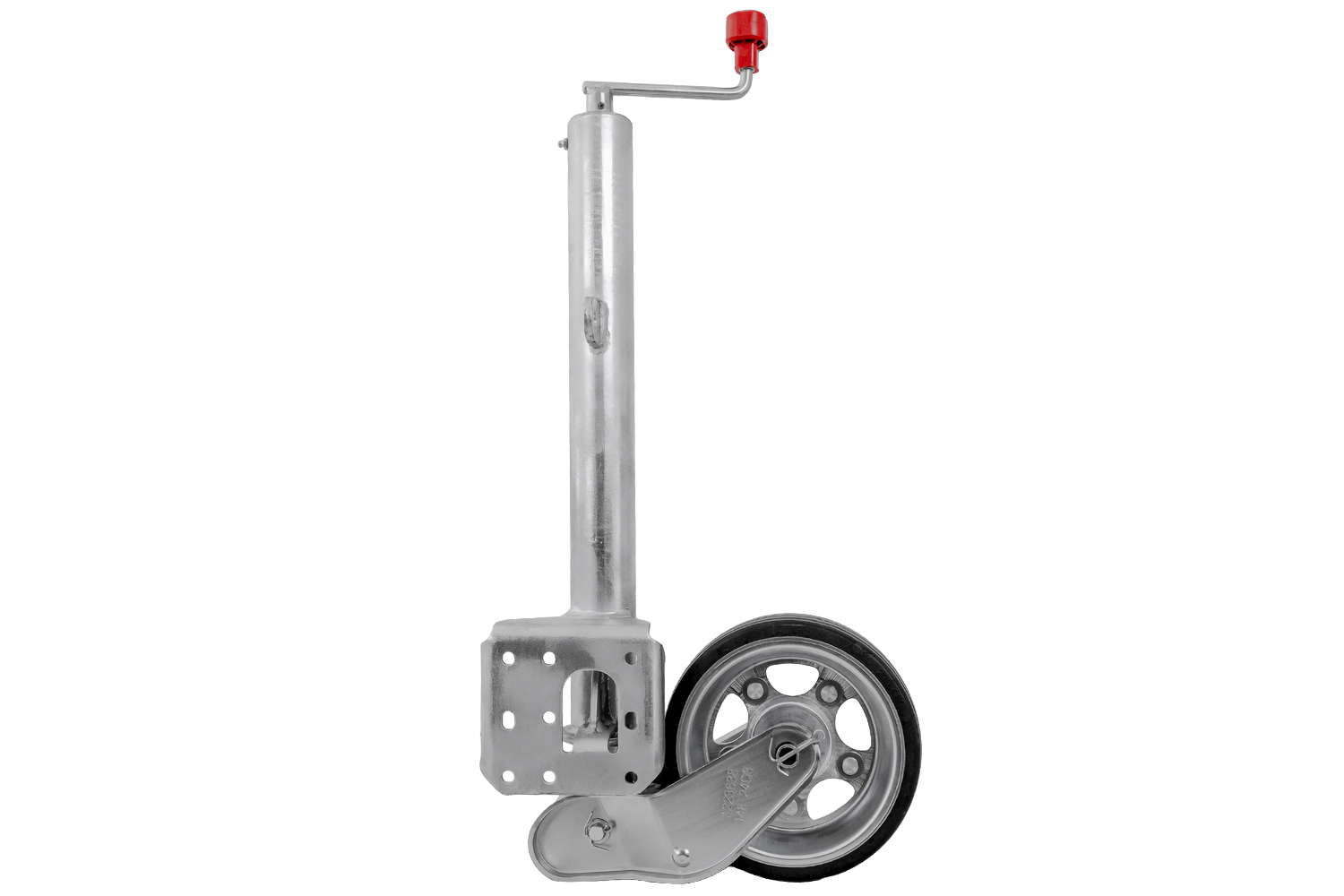 La ruota è zincata a caldo, proteggendola efficacemente dalla corrosione e dalle condizioni meteorologiche avverse. È dotata di una manovella con cuscinetto reggispinta , che rende il funzionamento più fluido e meno impegnativo. Il meccanismo di sollevamento della ruota è completamente automatico e l'ingrassatore integrato garantisce libertà di movimento e una maggiore durata. Questo modello è una versione lunga con una corsa di regolazione estesa , che facilita una regolazione precisa dell'altezza. Inoltre, la piastra di supporto della ruota è profondamente saldata, aumentando lo spazio di perno del piede di supporto durante il sollevamento e garantendo un maggiore comfort d'uso.
