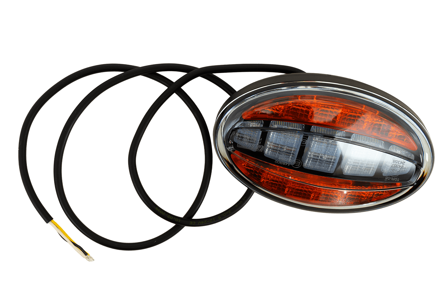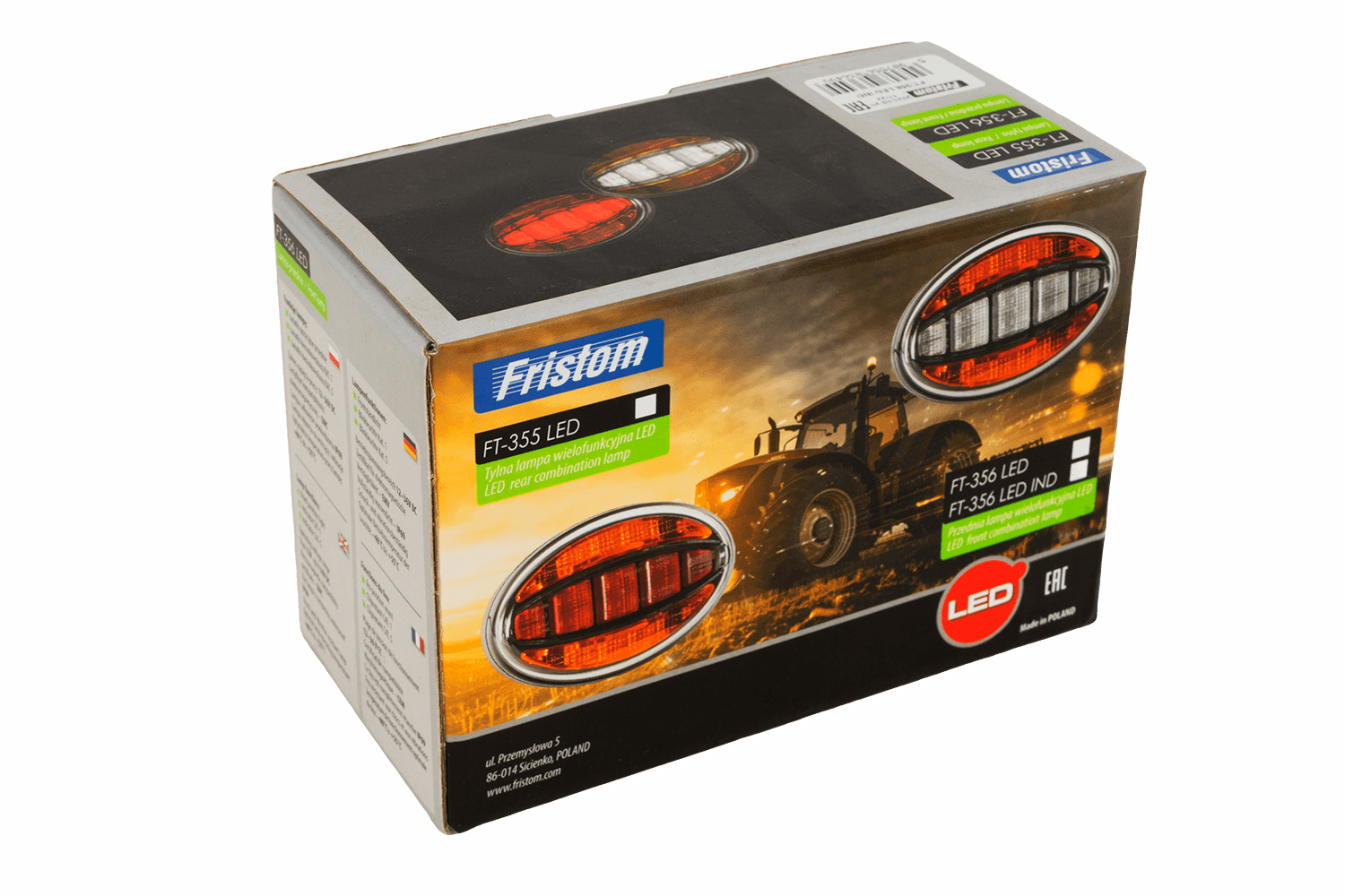 - Fanale anteriore FT-356 LED FRISTOM, per montaggio sul lato sinistro o destro. Offre tre funzioni: luce di posizione e indicatore di direzione anteriore e posteriore. È ampiamente utilizzato nei veicoli agricoli come trattori.